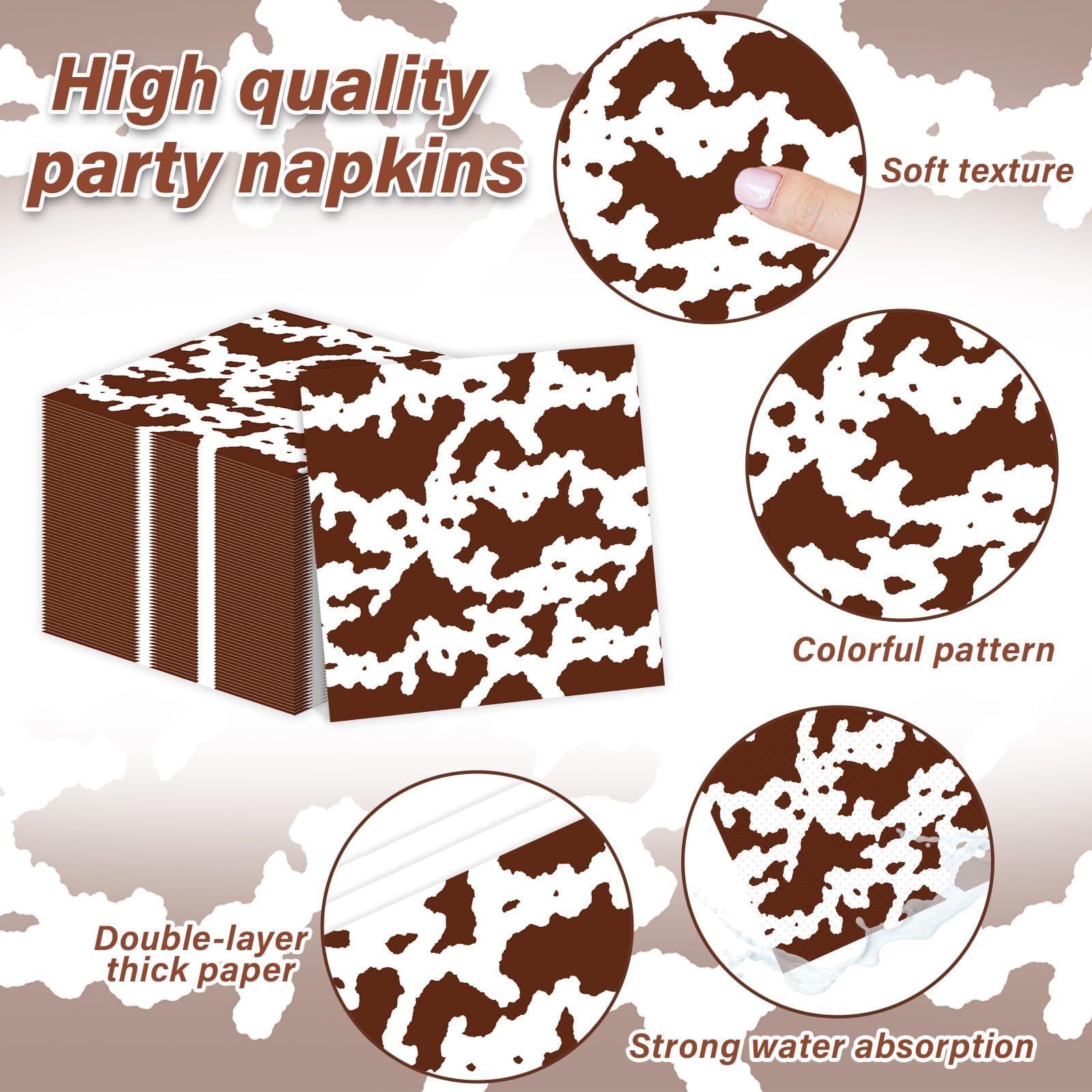 Premium material: All of our brown cow cake tableware set like plates and napkins are made of quality paper, the thickened could withstand normal food weight. The brown cow themed design are well-printed, avoid fading embarrassment.