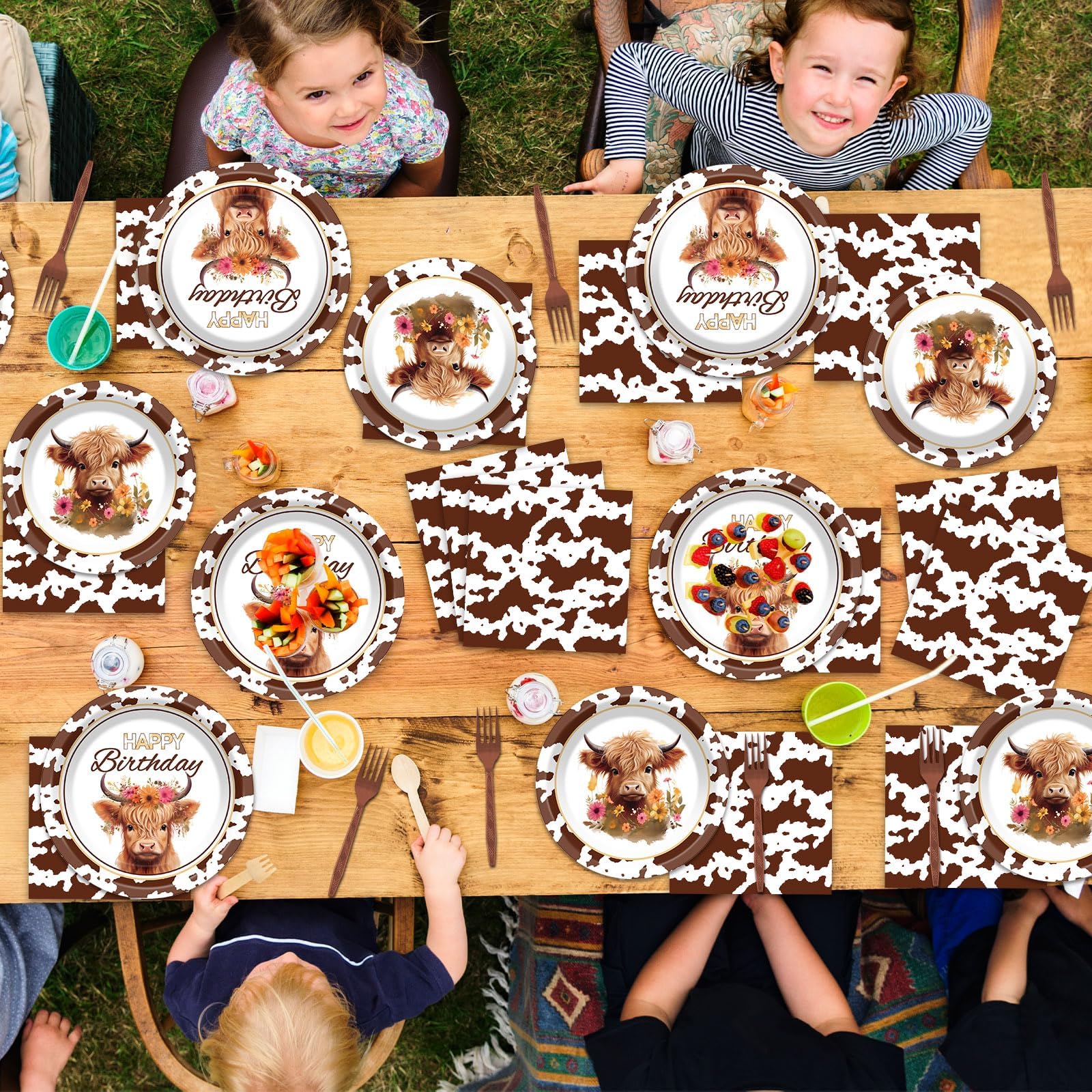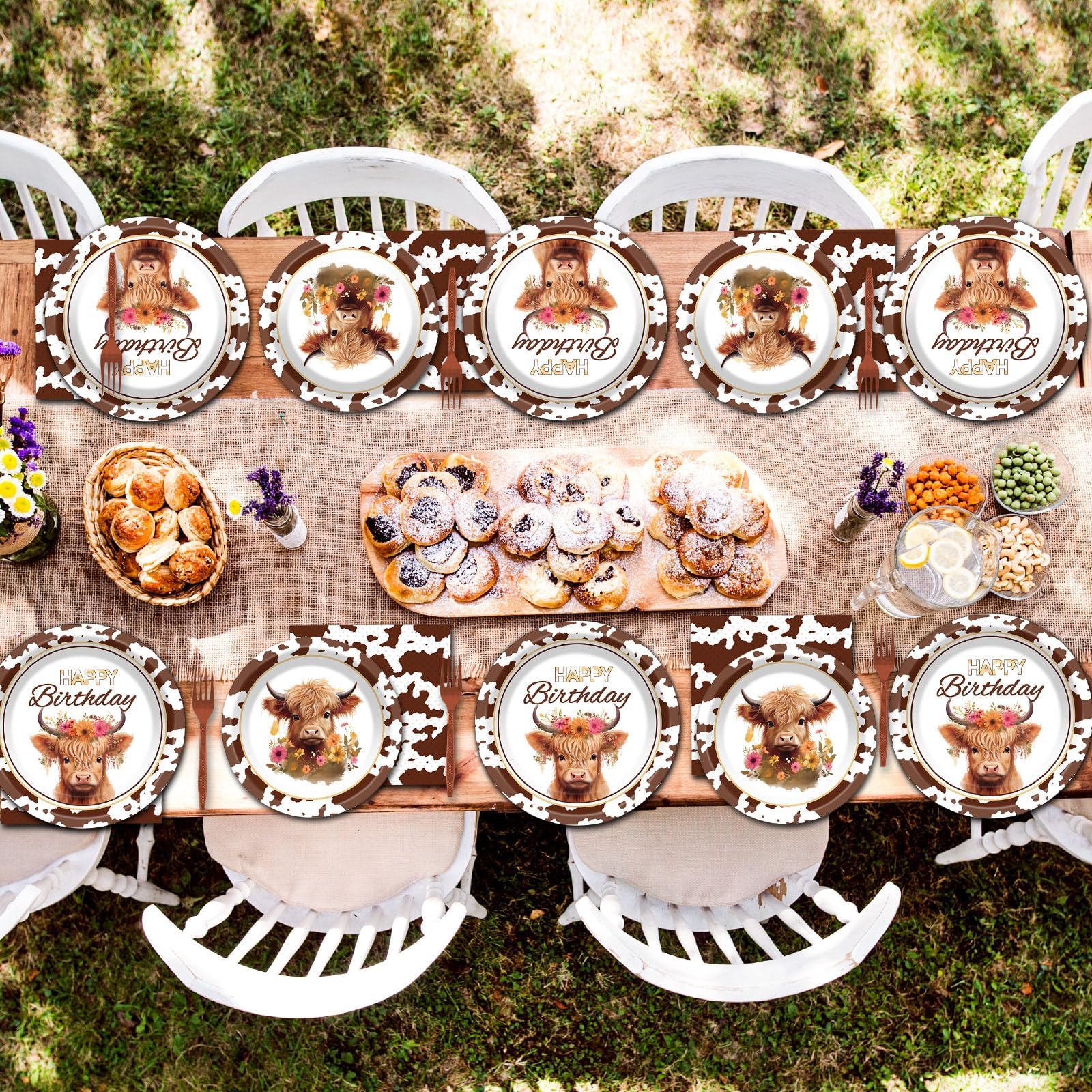 Highland cow design: Our highland cow birthday party paper plates and napkins are designed with highland cow as the main element, looking real and cute. They will accentuate your party style and add to the party vibe, and they'll be a fun and attractive addition to your cow birthday party.