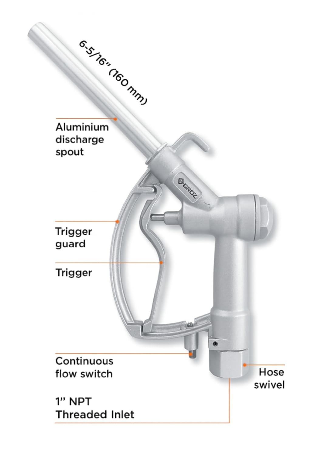 COMMERCIAL-GRADE CONSTRUCTION YOU CAN TRUST - Aluminum discharge spout, guard, and trigger handle demanding industrial use; durable metal components resist impact damage; backed by Groz's reputation for professional-quality fuel handling equipment