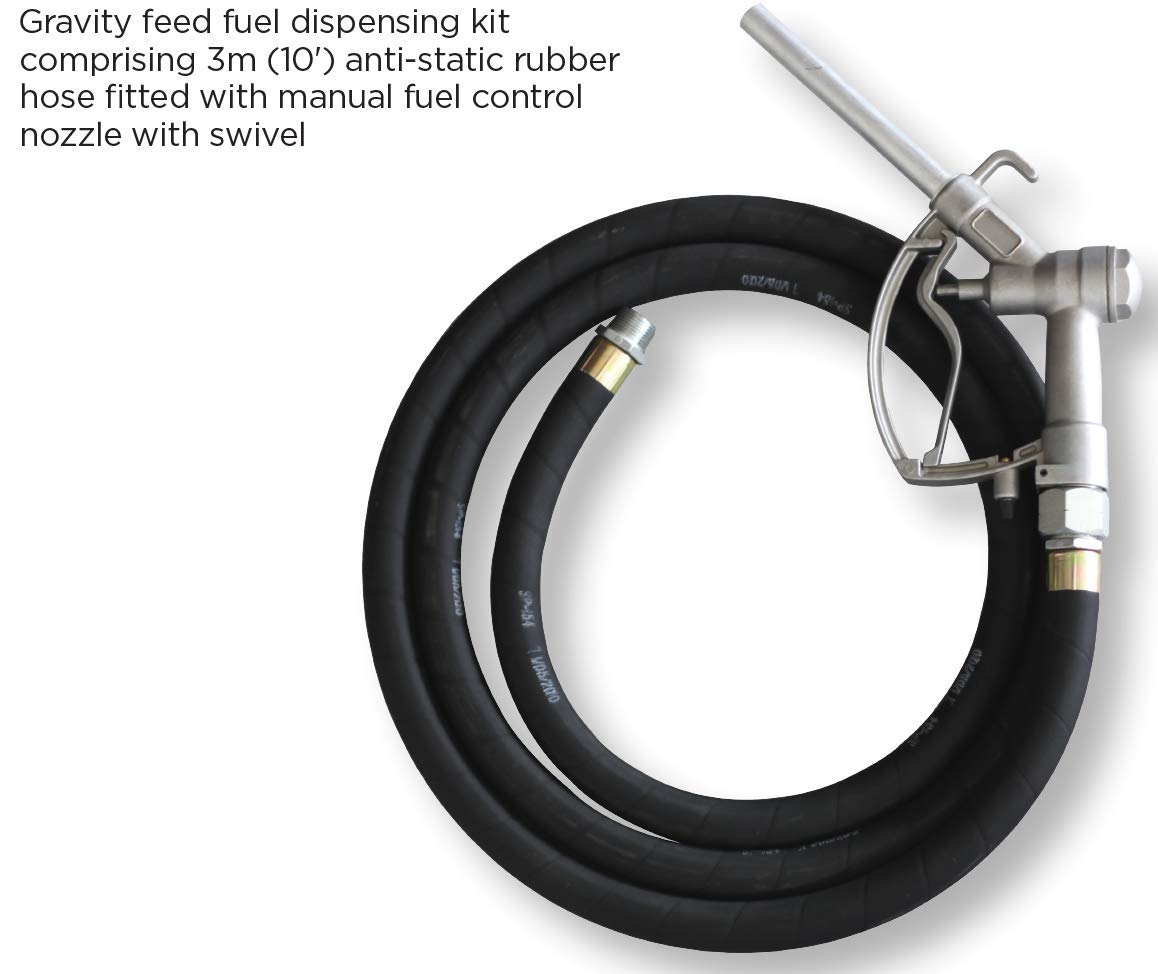 DIRECT FIT FOR STANDARD GAS CADDIES - 1" NPT male threading and 1" hose ID ensure compatibility with most gravity-fed fuel systems; 10-foot length provides extended reach for trucks, equipment, and tight fueling locations