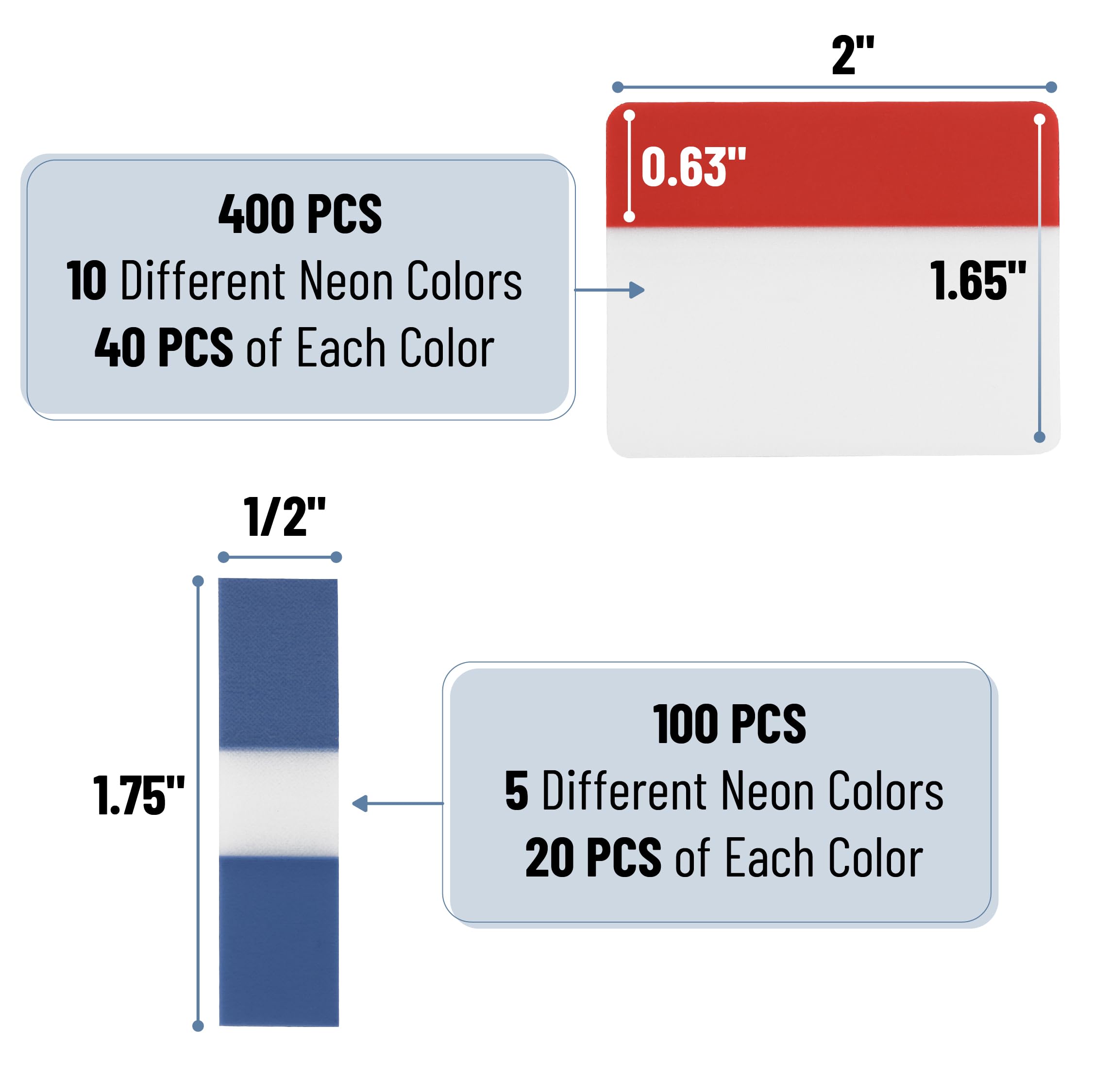 Mr. Pen sticky index tabs come in a set of 21 packs, providing a total of 500 tabs to help you efficiently organize, label, and mark your important documents. Made from premium, durable material, these index tabs are designed to be repositionable and stick securely without leaving residue behind, perfect for both short-term and long-term use. Each tab is ideally sized for quick and easy labeling, making them perfect for notebooks, binders, planners, and file folders. Featuring bright, eye-catching colors, these tabs allow for easy color-coding, helping you quickly locate and access important sections. Whether you're a student, professional, or just organizing your home office, these sticky index tabs offer a practical and convenient way to stay organized and efficient.