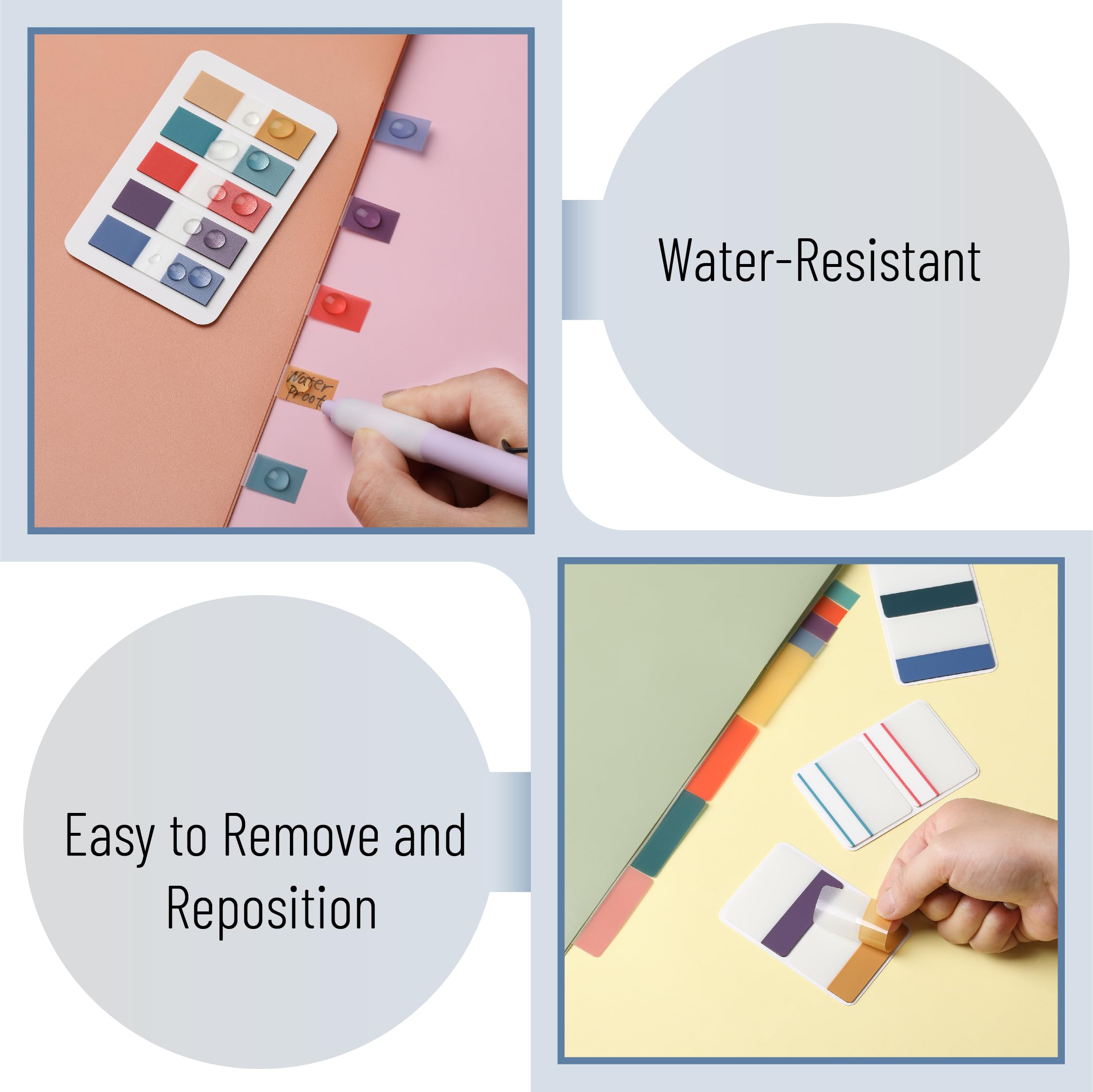 Made from premium, durable material, these index tabs are designed to be repositionable and stick securely without leaving residue behind, perfect for both short-term and long-term use.