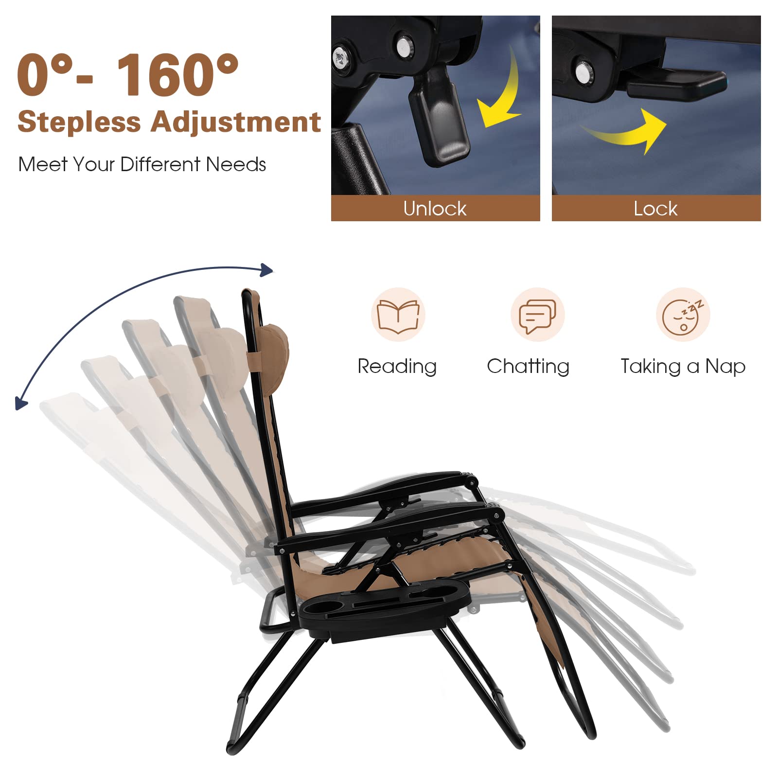 【Relaxing Reclining】The Goplus anti-gravity chair can be reclined from vertical position to the 160°comfortable lying position, allowing you to go relax out thoroughly in the summer breeze. Also, the premium elastic ropes firmly connect the seat fabric to the steel frame, providing utmost coziness and stability.