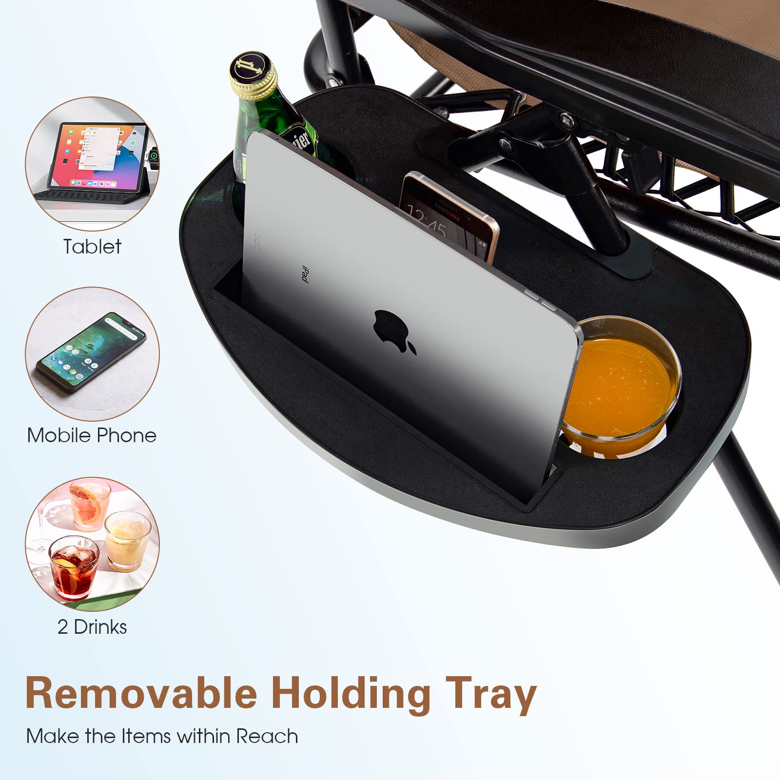 【Cup Holder Tray and Headrest】Equipped with a detachable cup holder tray, you can enjoy the beverage, magazines and phone within a hand reach. Additionally, the comfortable armrests and position-adjustable pillow promote seating experience for people with different heights.
