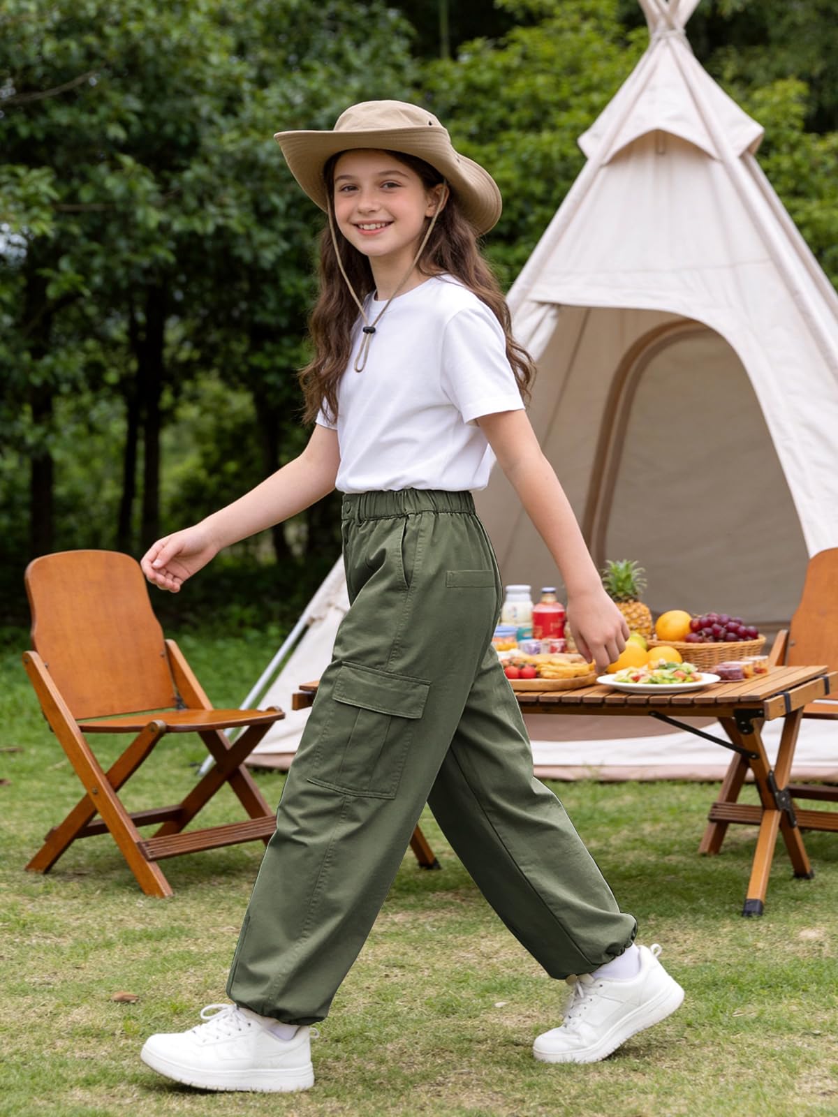 [Features] Girls pants with elastic waistband for comfort. the deep side pockets, multi pockets for functionally, the strings at your ankle.