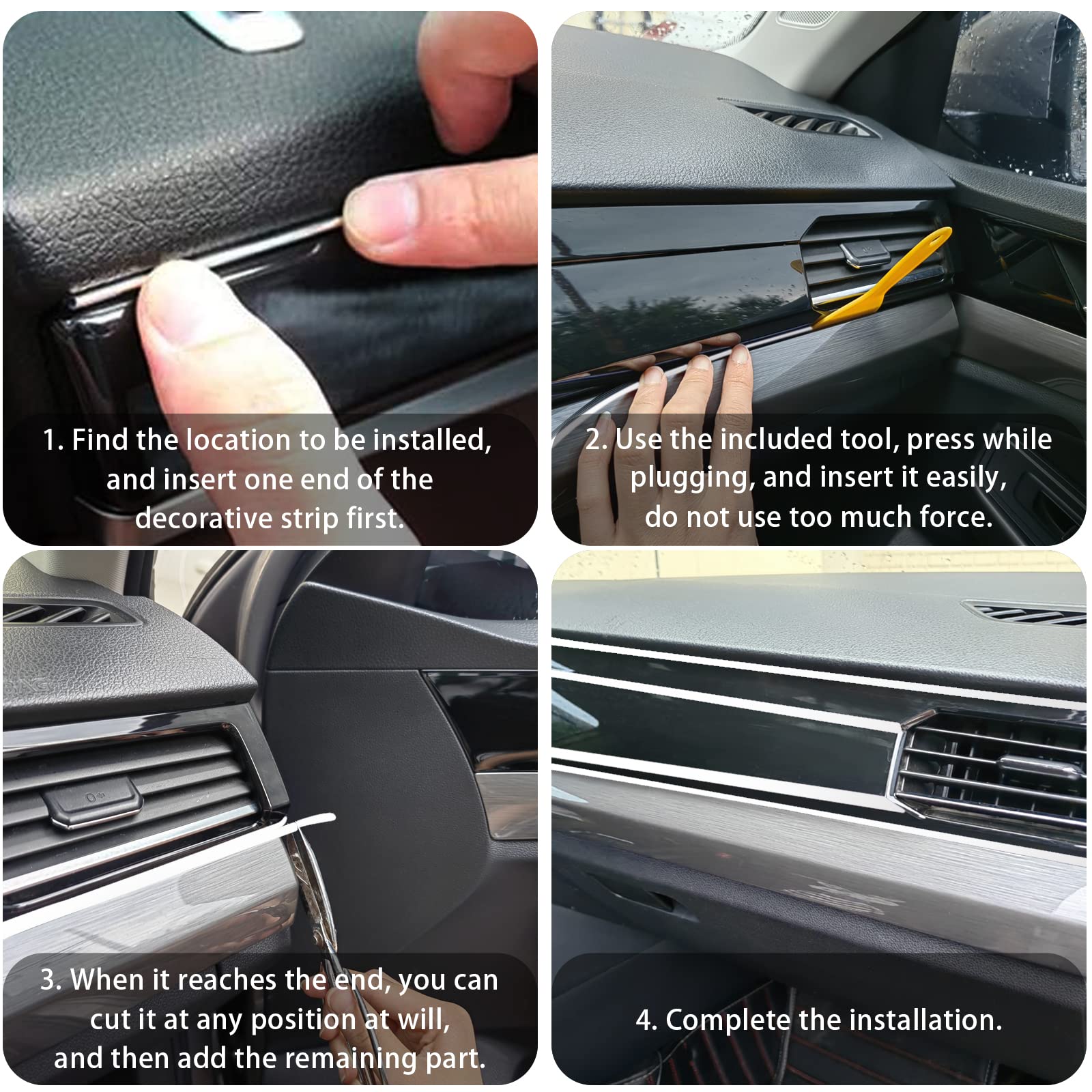 Interior Strip Size: The length of the trim strip is 3 meters, about 9.8 feet, which is enough to use in your car interior, dashboard, door, steering wheel, center console, etc. Also easy to trim to the right length you need.