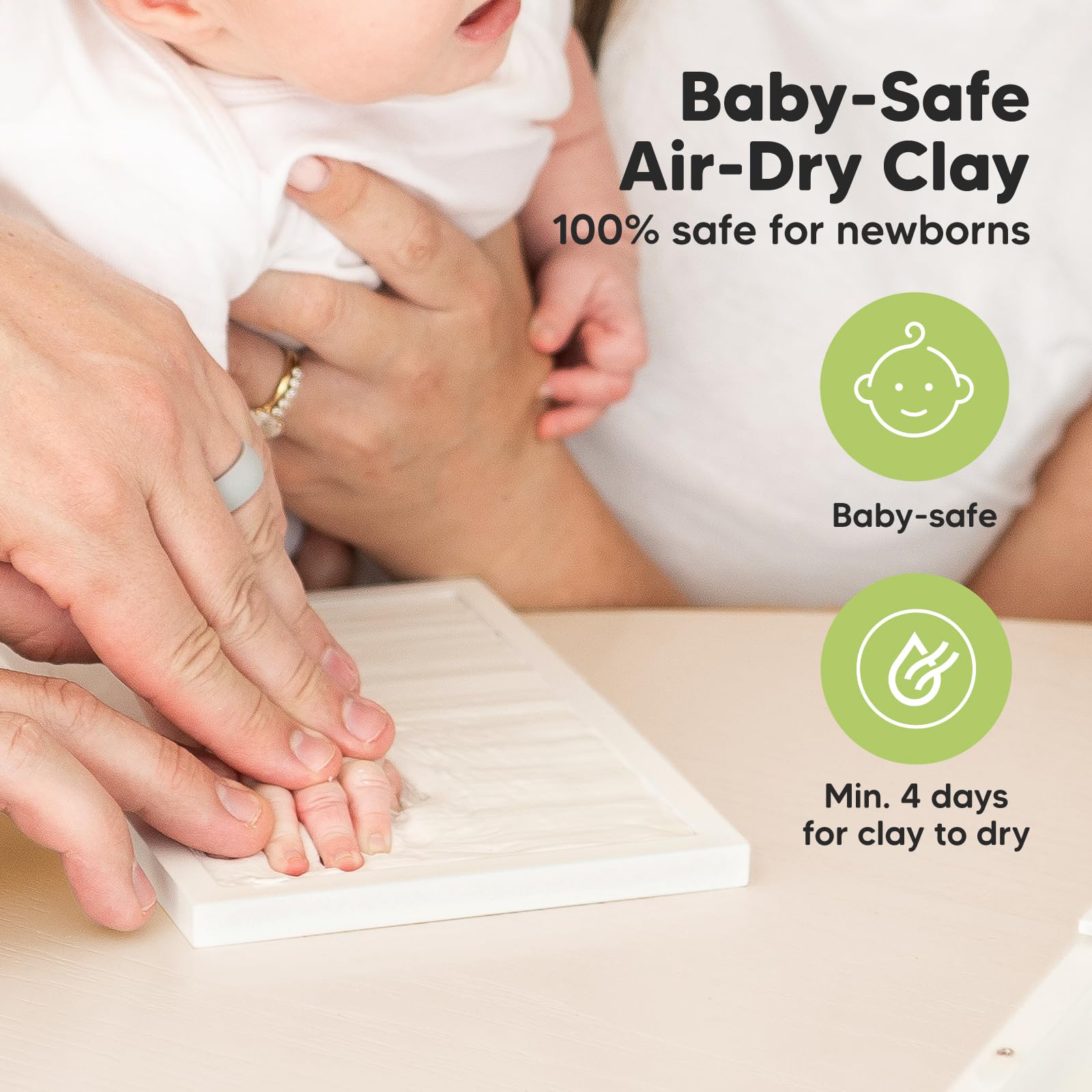 Food-Grade Clay - Heartfelt Baby Hand and Footprint Kit features 100% baby-safe air-dry clay, ideal for preserving your baby prints. Our high-quality material ensures durability, maintaining your baby keepsake kit in prime condition for years.