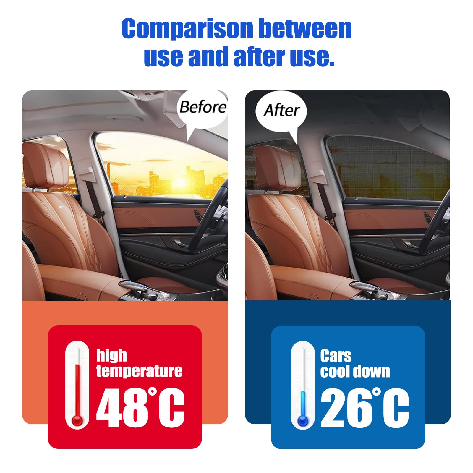 Privacy Protection: These opaque mesh sunshades can create privacy protection for front and rear passengers when the windows are opened for ventilation, without worrying about being peeked by the outside world. You can enjoy the cool, fresh air in your car without having to endure the heat of the sun.