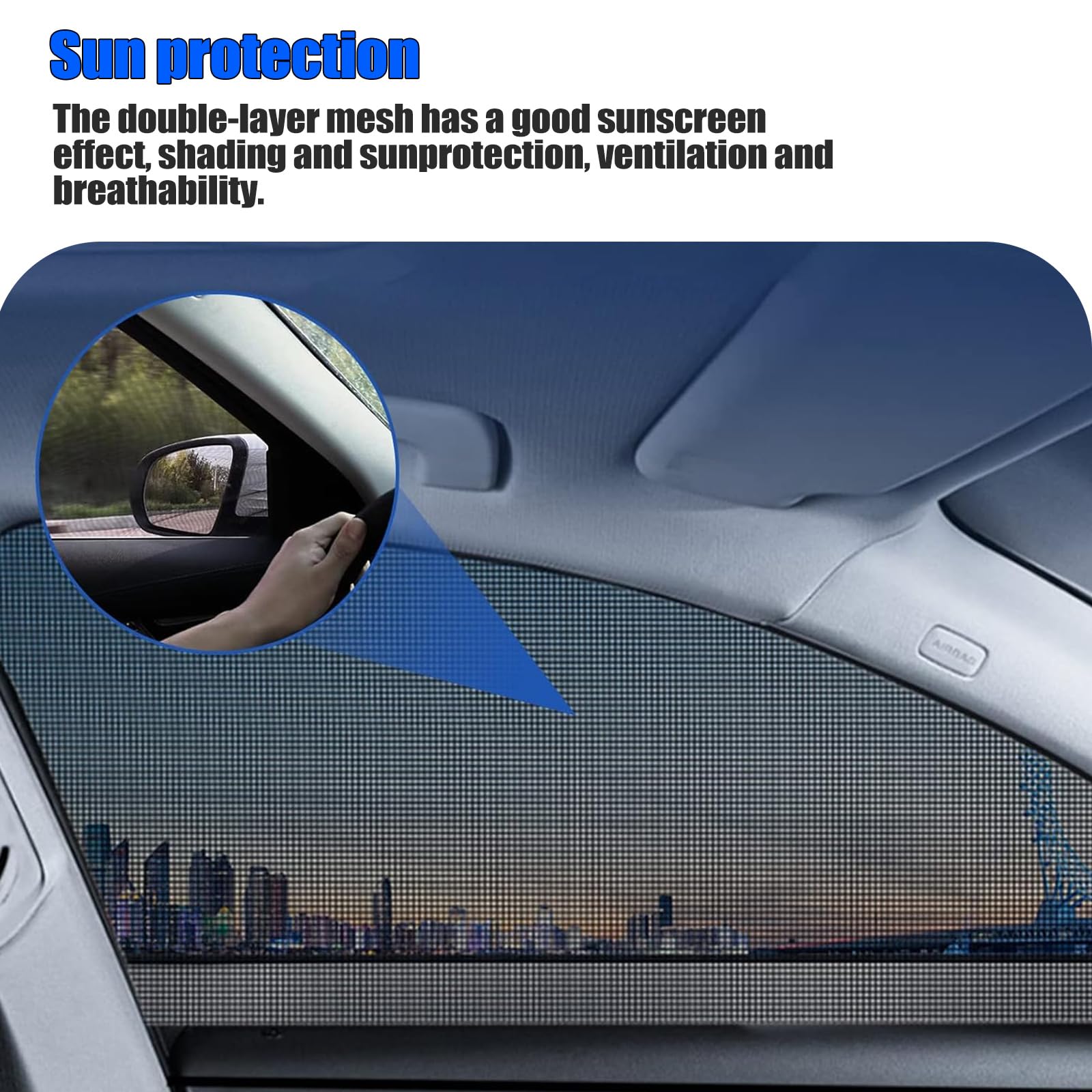 Perfect Coverage: The car sunshade is designed to cover the entire exterior window frame without any adhesive tape, ensuring that the car window rolls up and down freely while the rearview mirror is clearly visible, making driving safer. The double-layer mesh has good sun protection effect, ventilation and breathability.