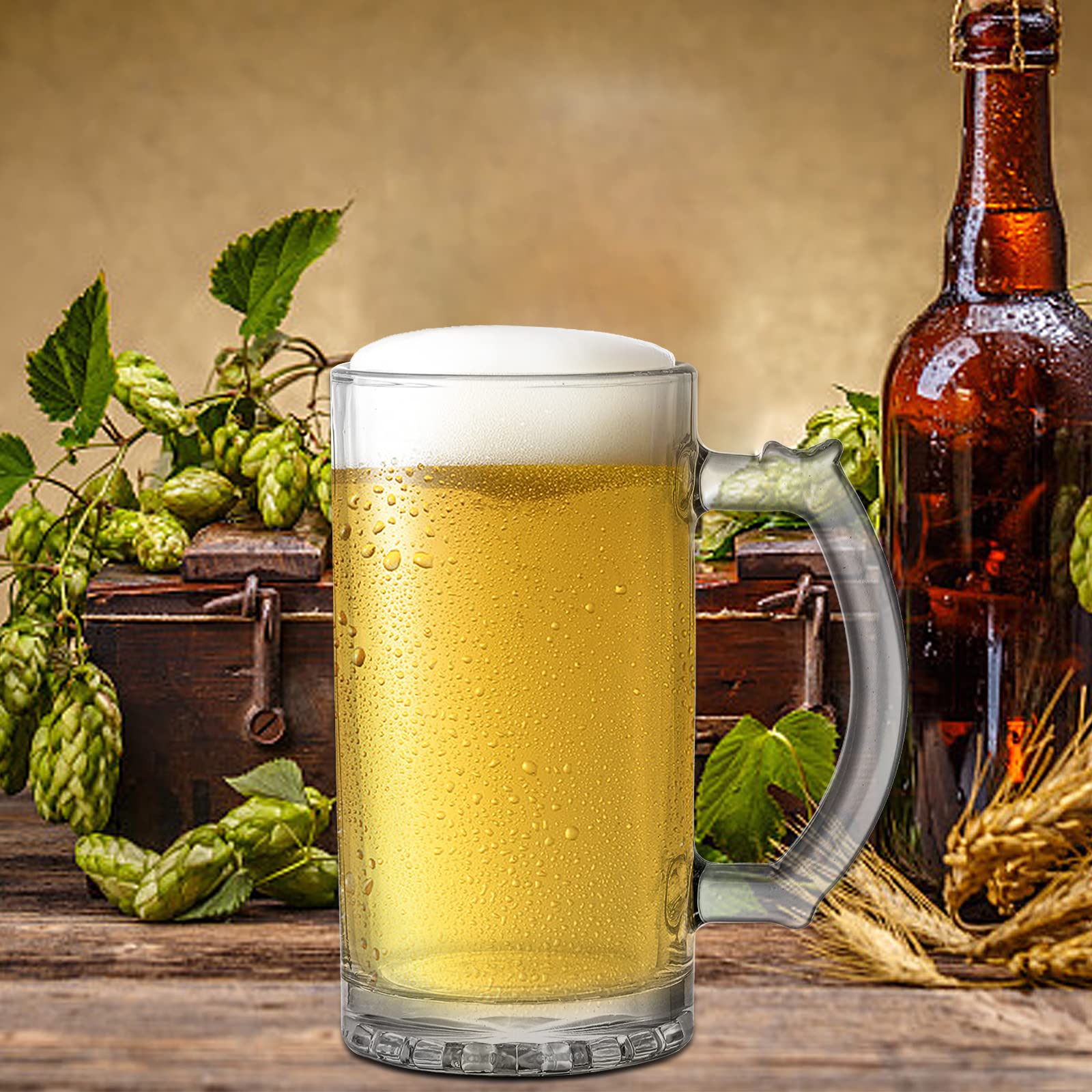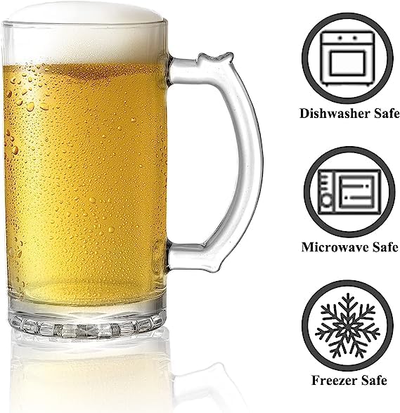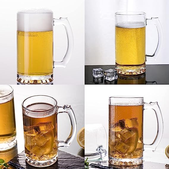 The glass beer mugs set is ideal as a present for housewarming, Christmas, Thanksgiving, birthday, weeding and more. Who doesn't love a beautifully crafted beer glass mug with handle. Great for beer lover and house lover too.