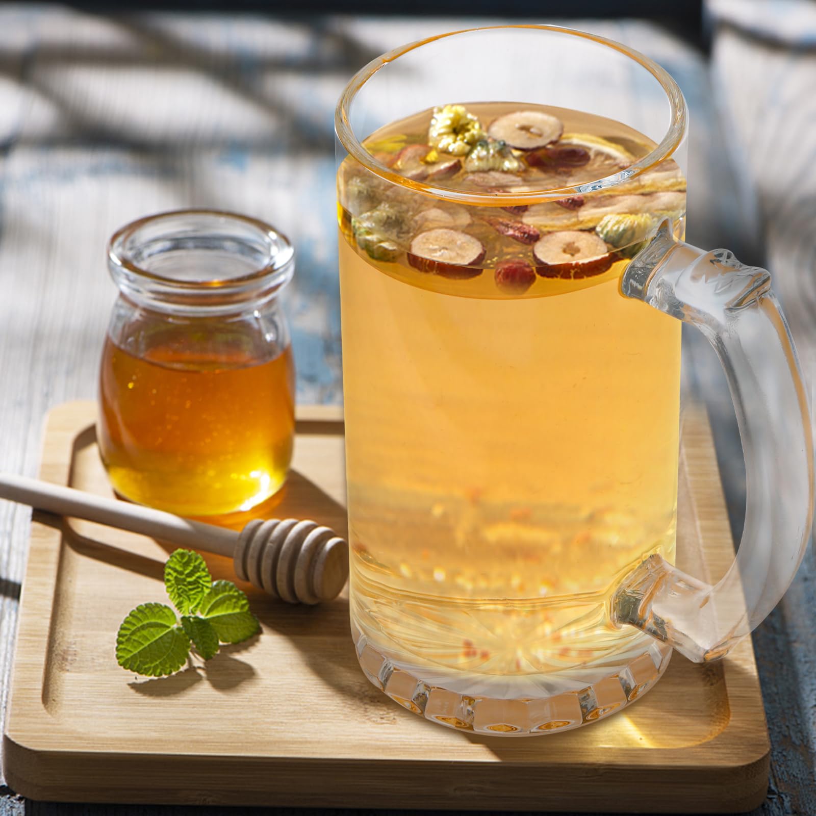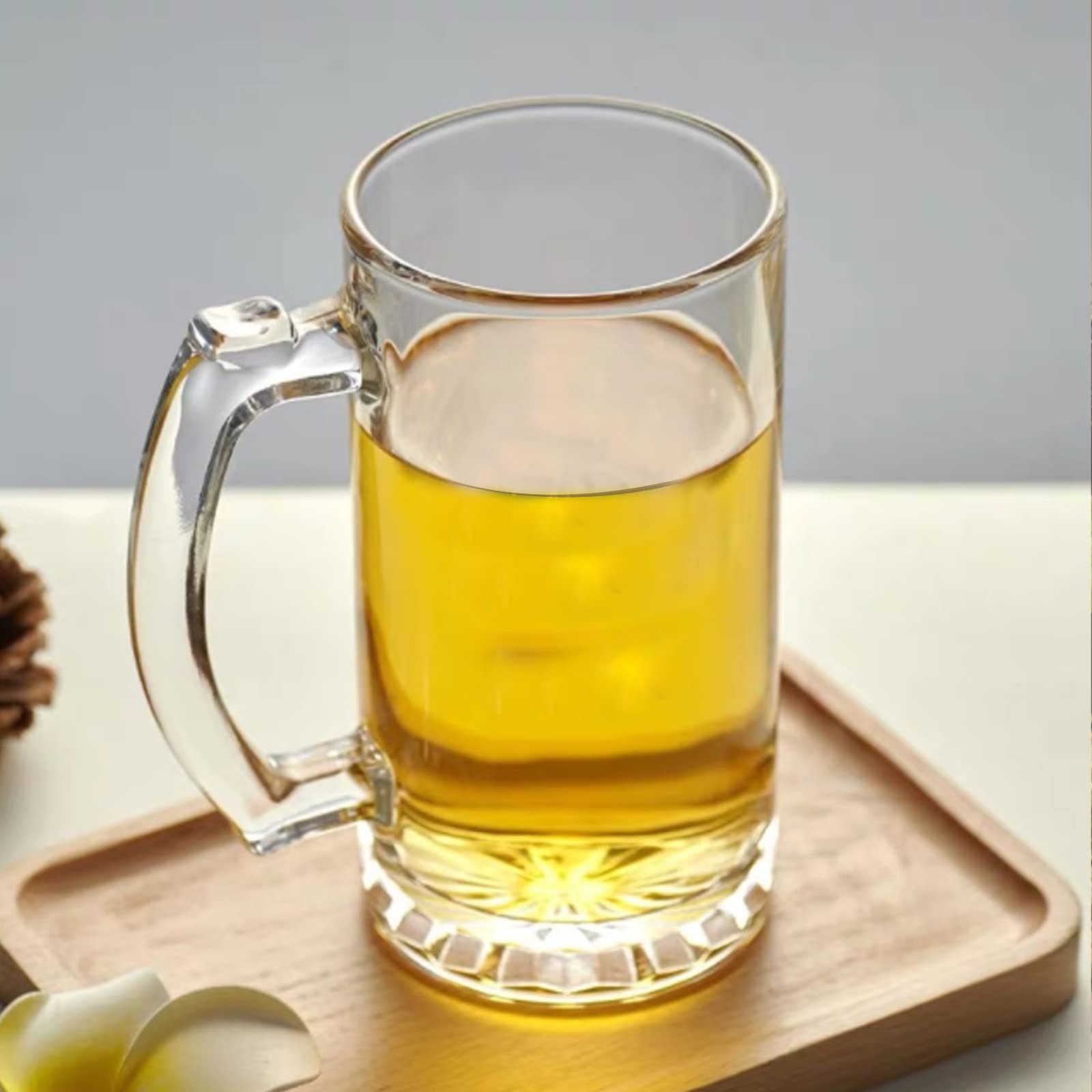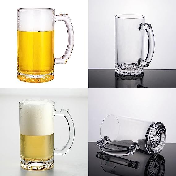 Easy to hold handle design is easy to pick up and put down, not heavy with beer full inside, crafted with beautiful pattern on the heavy glass base, and tall cylindrical shape looks modern and elegant.
