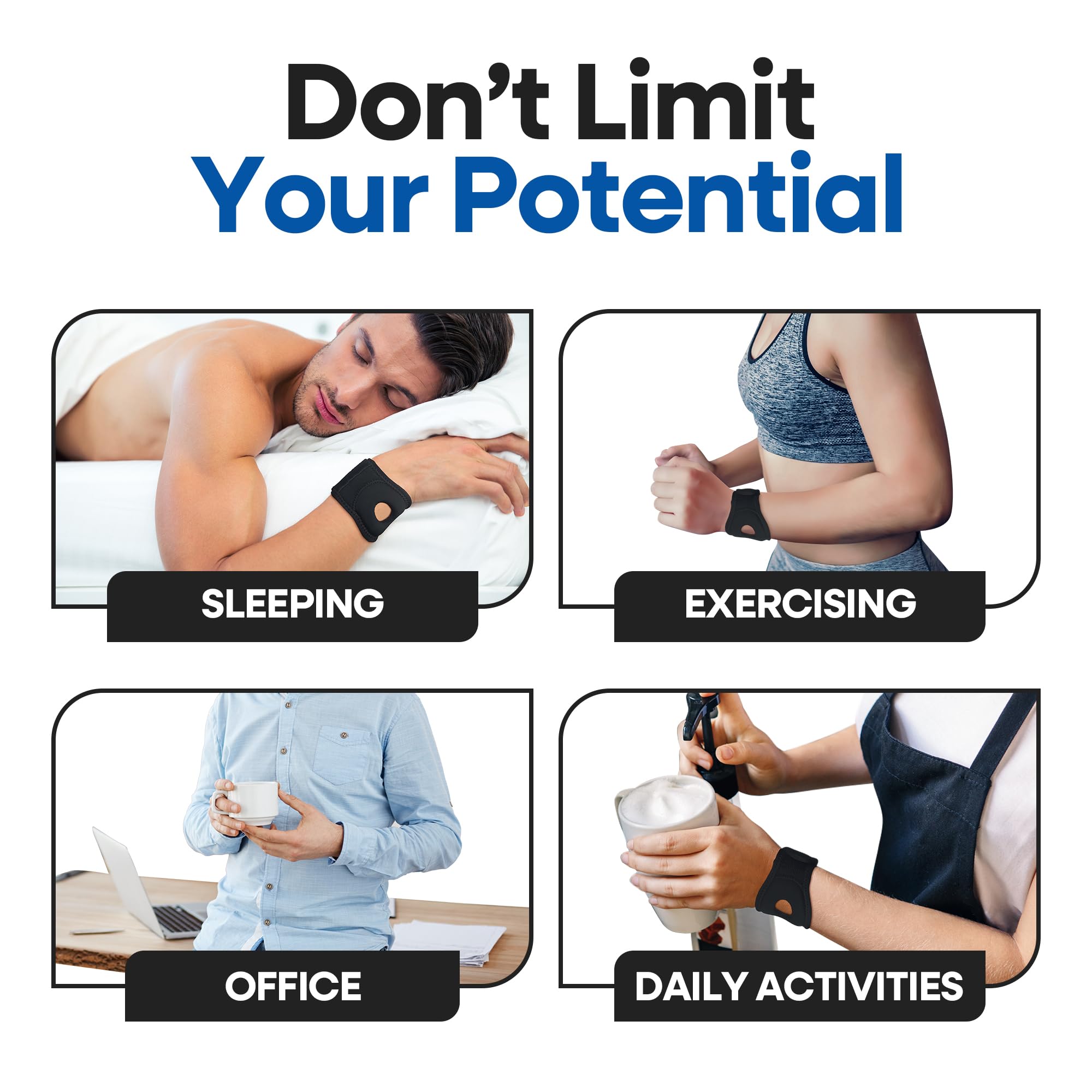 INCREASE WRIST STABILITY: Wrist compression wrap helps keep your wrist supported throughout the day with extra wrist stability & compression, and helps stabilize the wrist for night support. Our adjustable wrist wrap fits both men and women and both wrists.