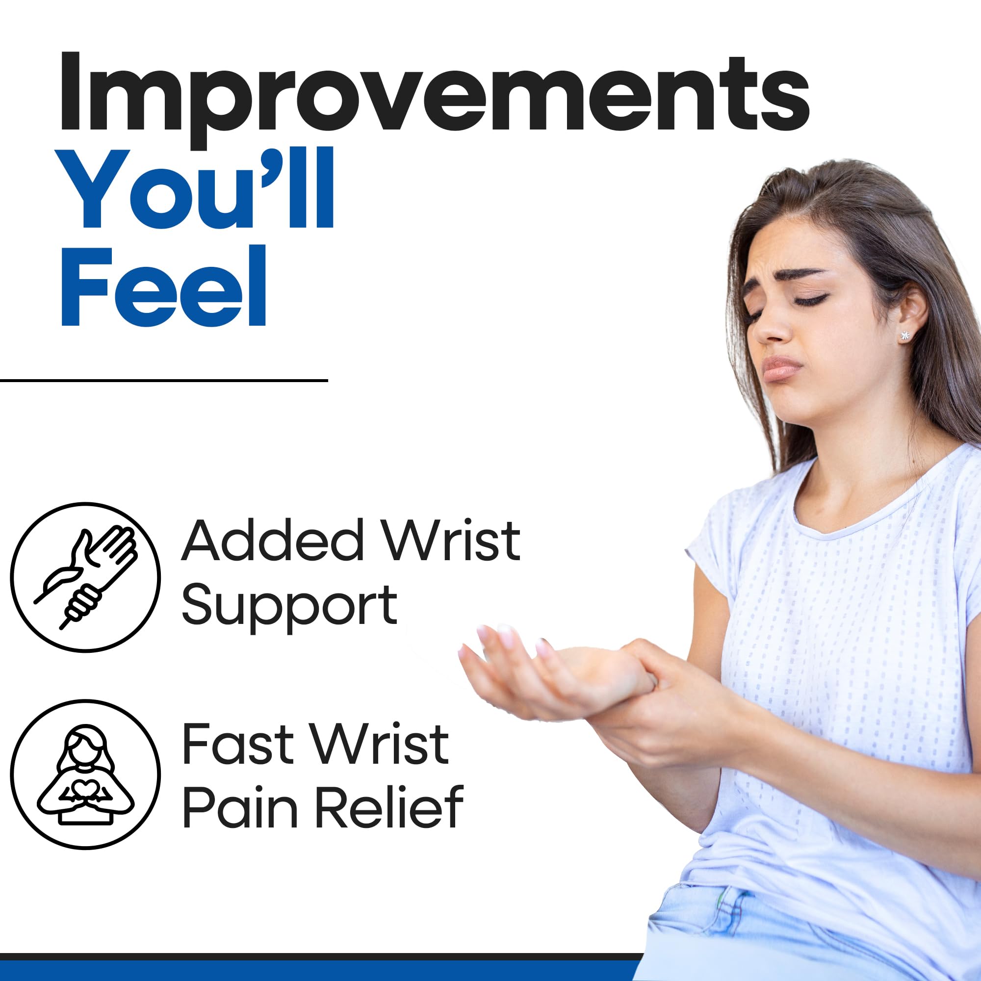 ADDED WRIST COMFORT: Adjustable wrist wrap compression to help reduce wrist tendonitis & swelling. A smart alternative to bulky or non-flexible carpal tunnel wrist brace. Wrist support for work, working out, gym, tennis, golf, bowling, etc.