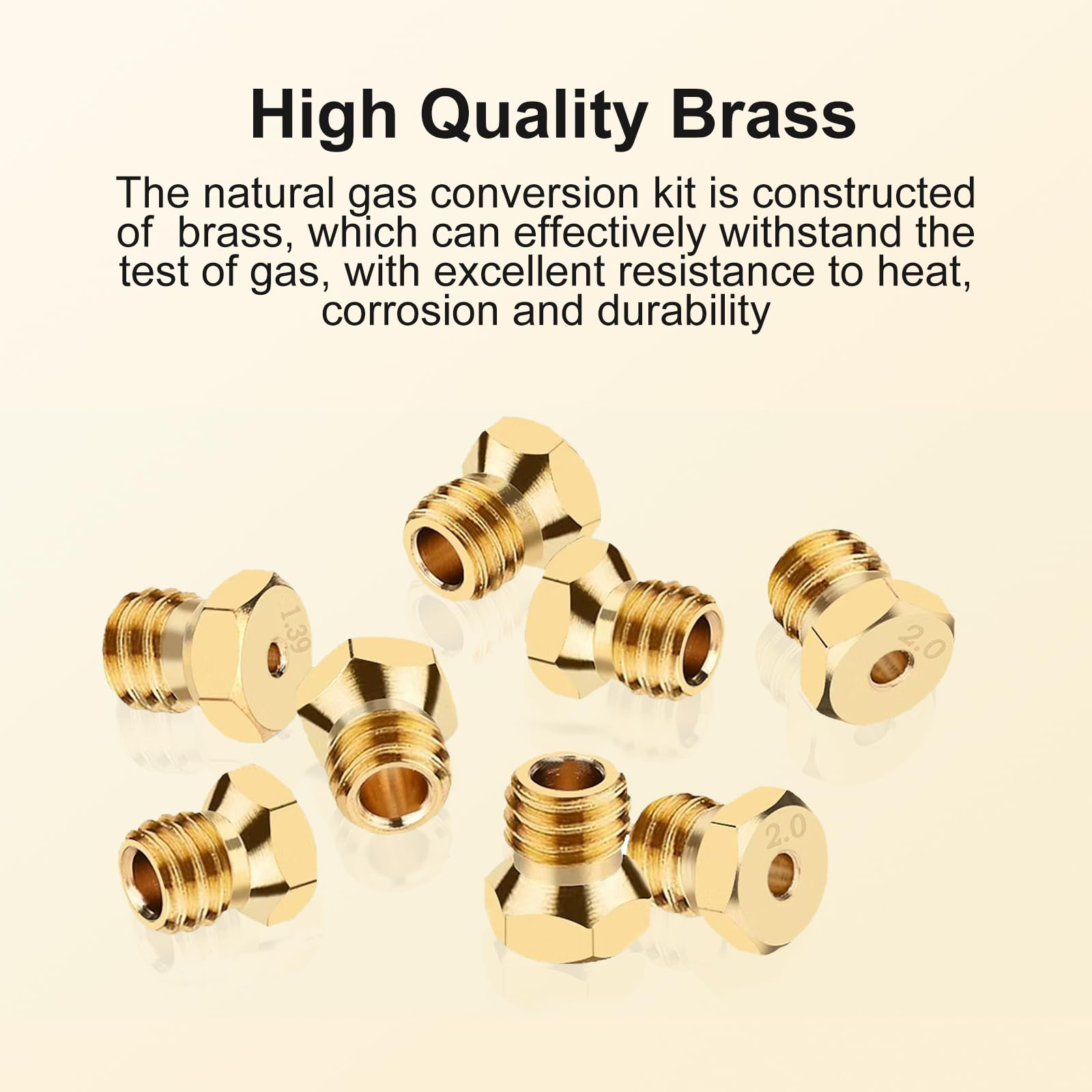 【High Quality Brass】- The natural gas conversion kit adopts brass structure, which can effectively withstand the test of gas, with excellent high temperature resistance, corrosion resistance, durability, to ensure a safe connection with the natural gas to prevent leakage.
