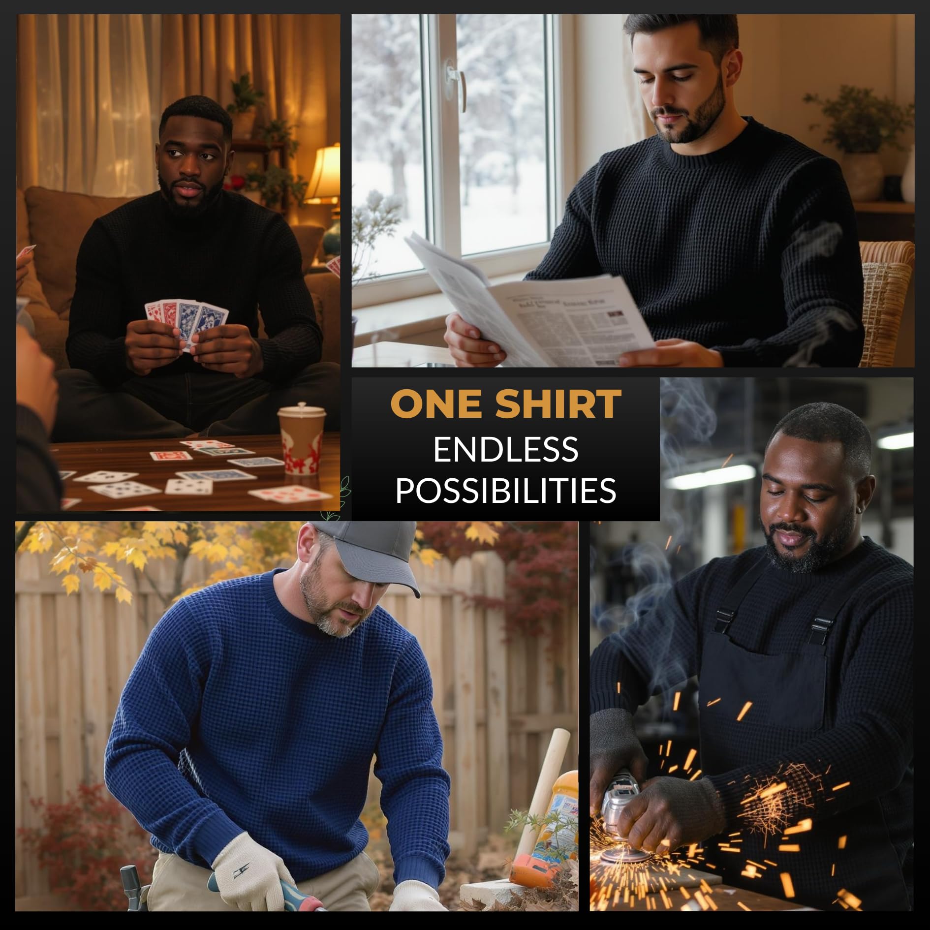 【Layer Up or Wear Solo – The Shirt That Does It All】- The ultimate thermal for versatility! Wear it as a warm base layer under jackets and coats in colder months, or on its own as a durable, stylish long-sleeve built for work and everyday wear. The reinforced waffle-knit texture enhances insulation while adding a structured, casual look, making it great for work, lounging, or outdoor activities. No matter the season, this shirt delivers warmth, comfort, and effortless style.