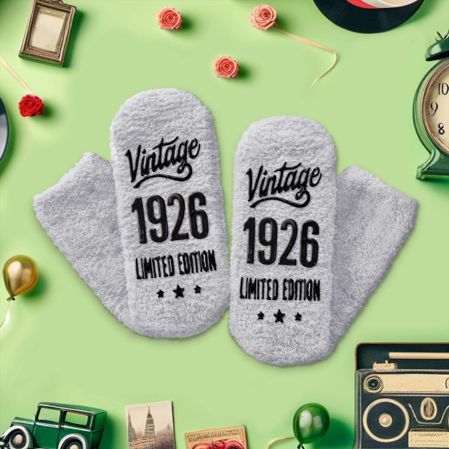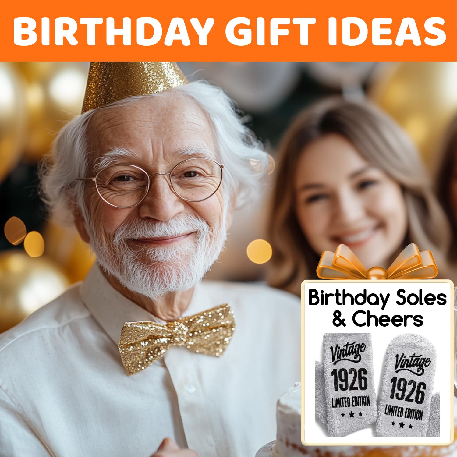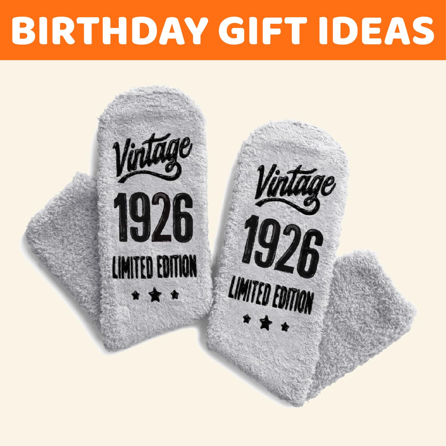 1926 BIRTHDAY GIFTS: Give him this thoughtful 100th birthday gift to remind him of how special he is. He will smile when he sees the words “Vintage 1926 LIMITED EDITION.” Practical and fun, these birthday socks make a great gift for anyone born in 1926.