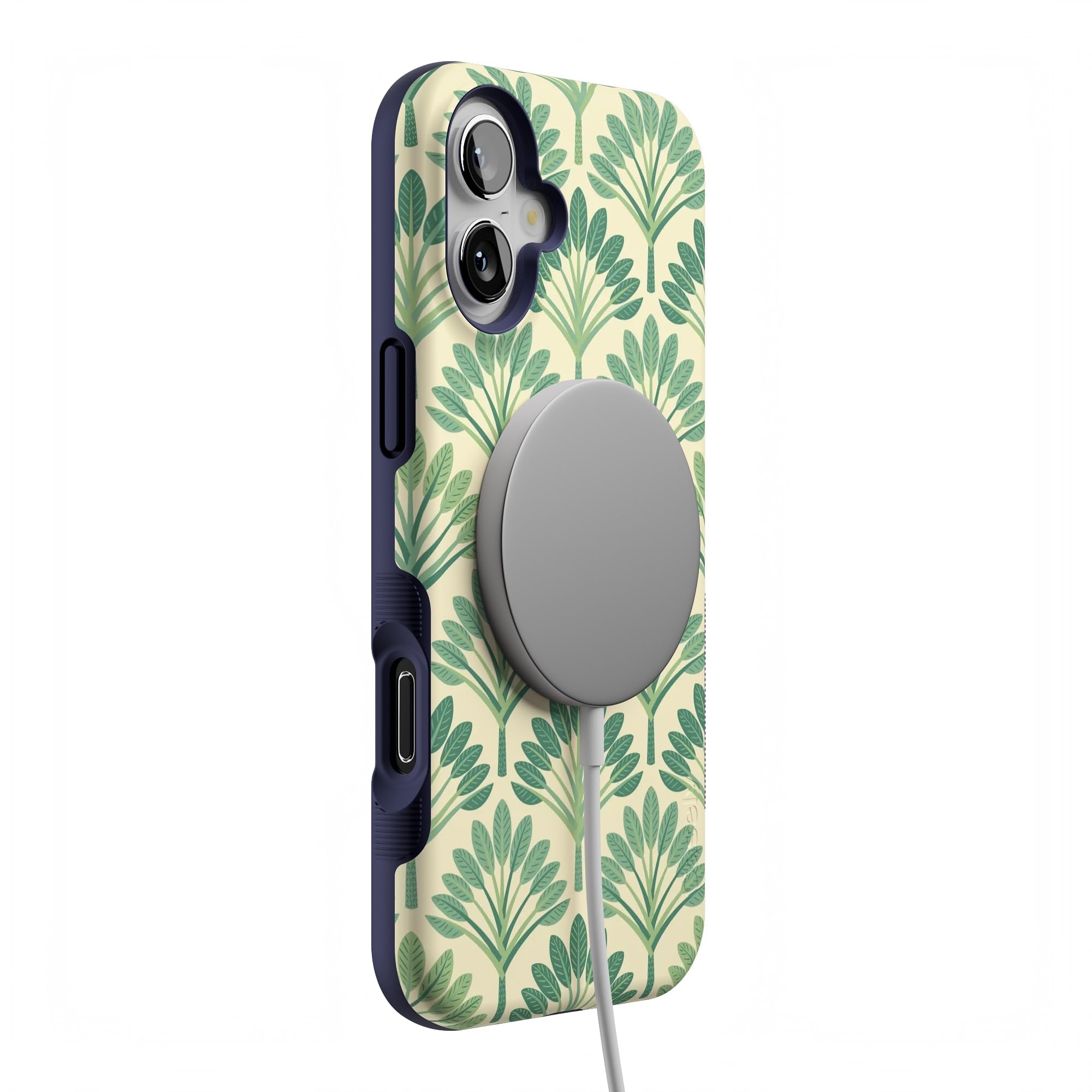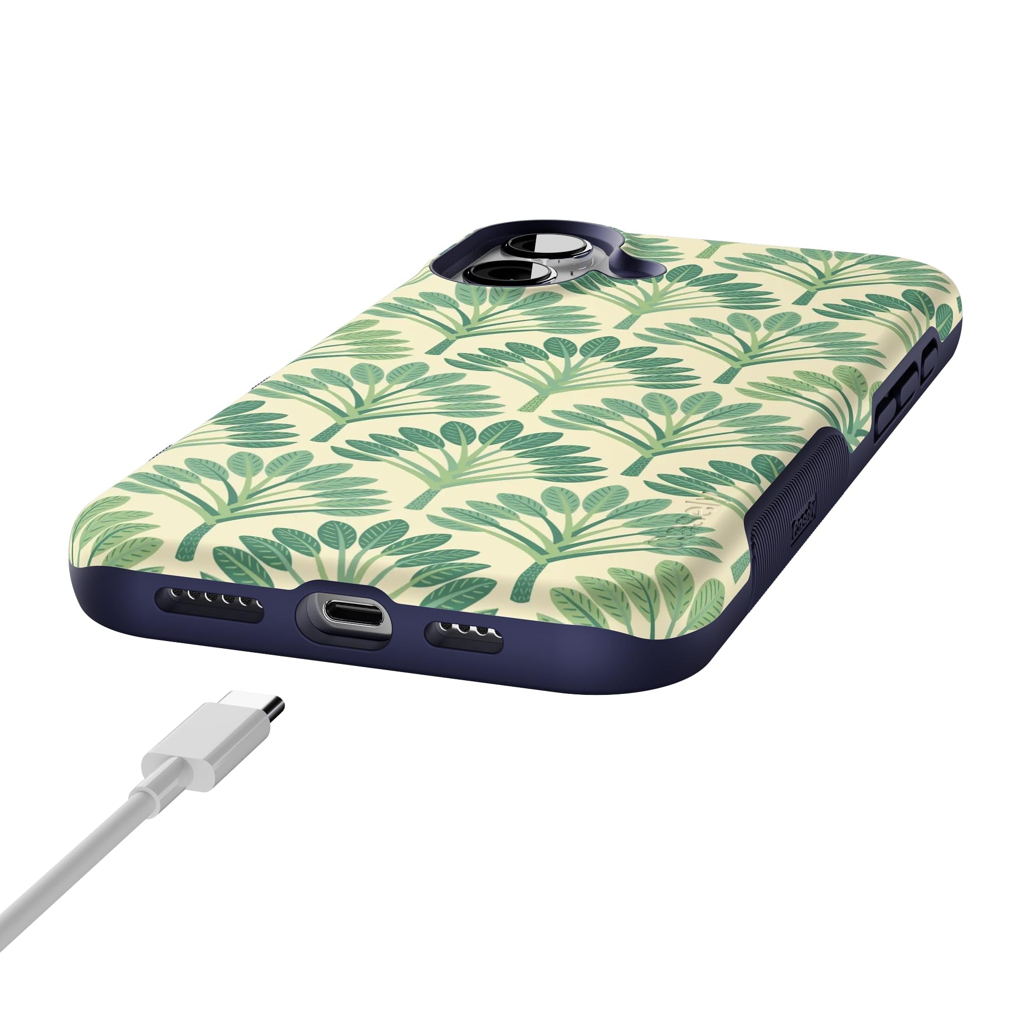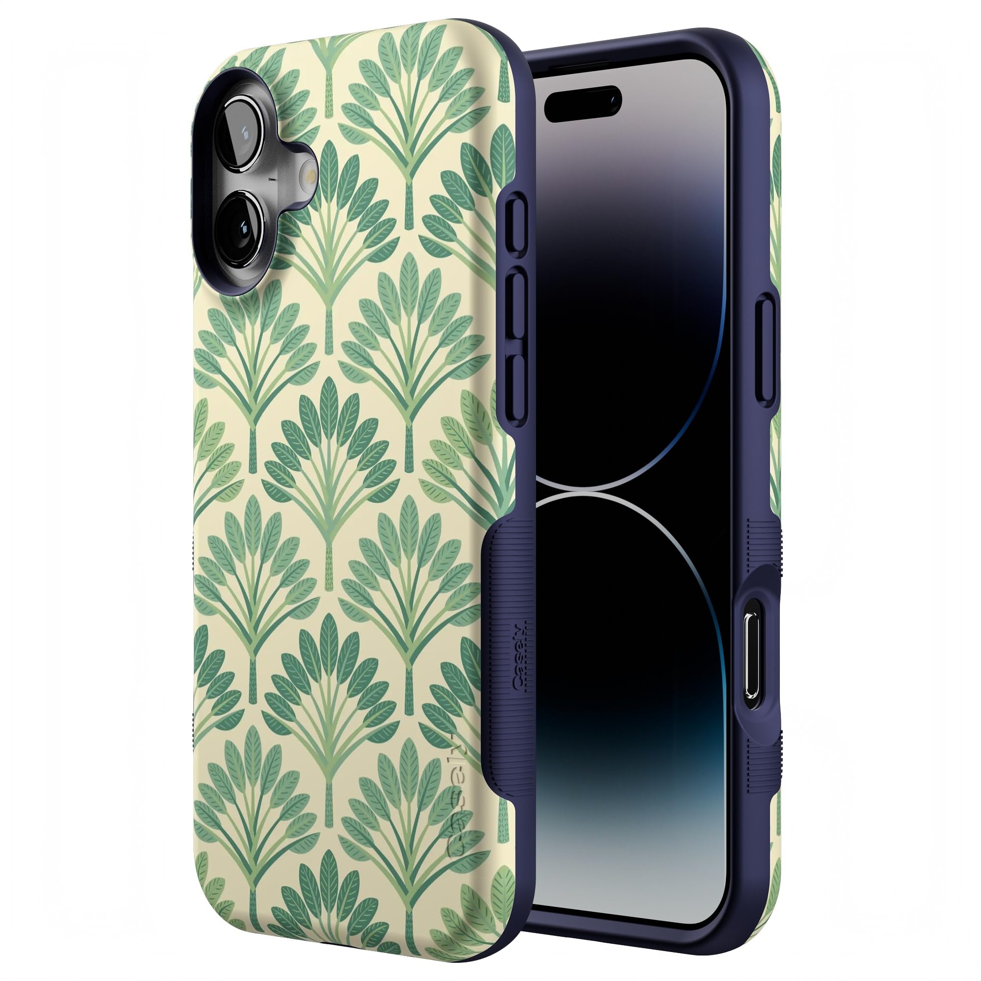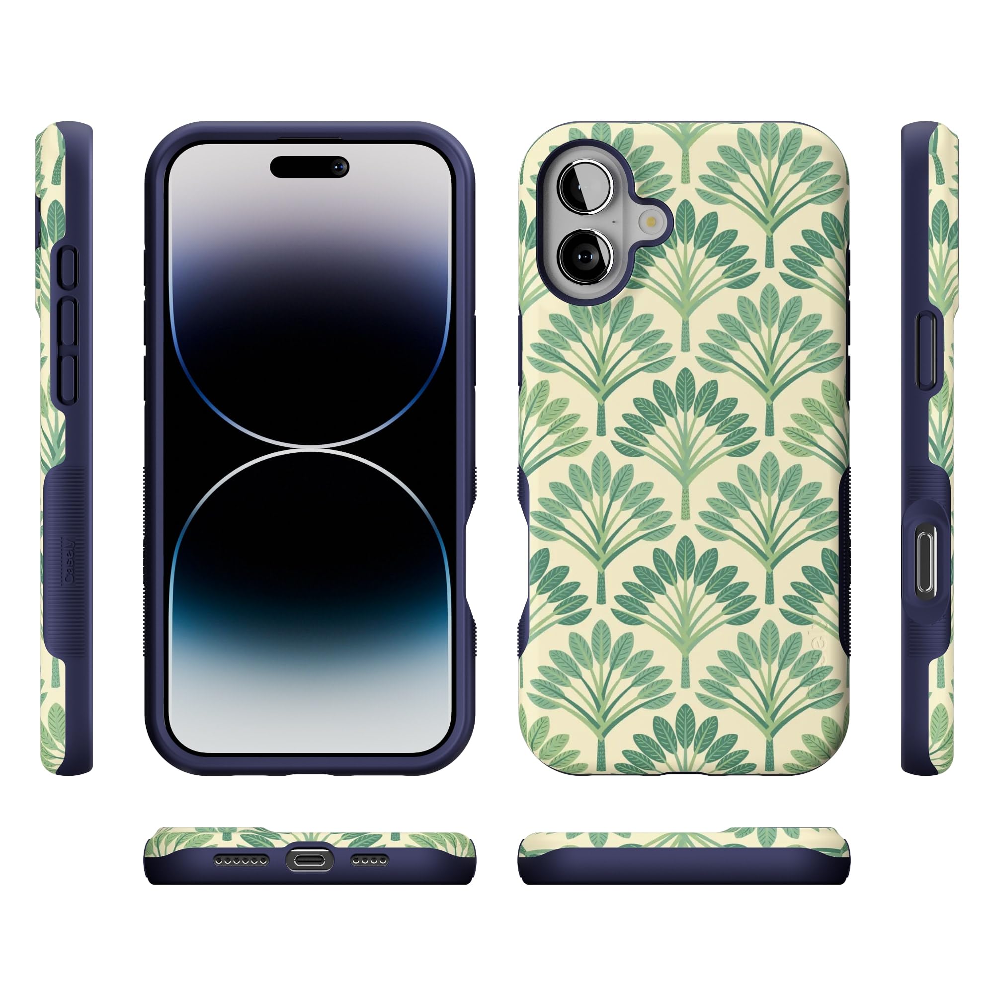 Palm Royale is a love letter to resort luxury. This elegant case features hand-drawn palm fronds in rich green shades layered over a warm, creamy backdrop—like retro wallpaper from a boutique hotel or a breezy sundress made for sipping cocktails in the shade. It's refined, timeless, and effortlessly cool. Perfect for daydreamers, destination-lovers, and anyone who appreciates a touch of old-school glamour. One look and you'll swear you can hear the ocean.