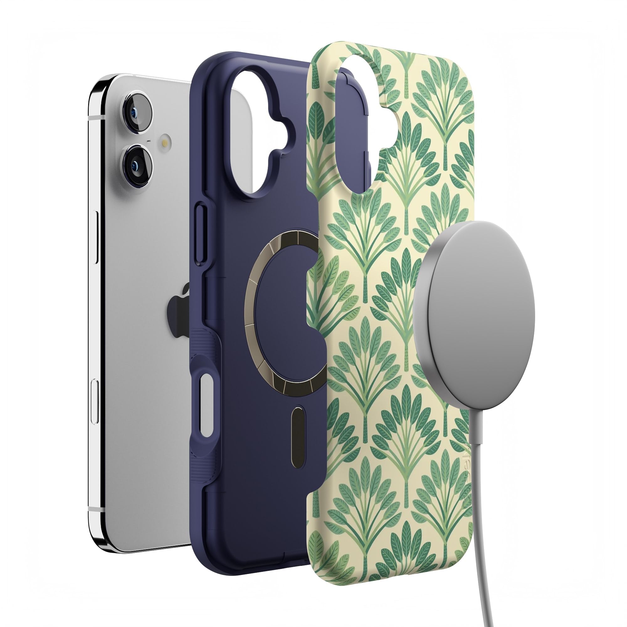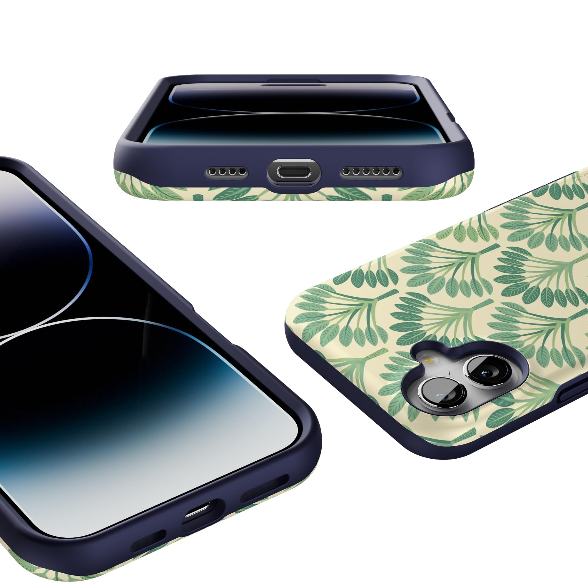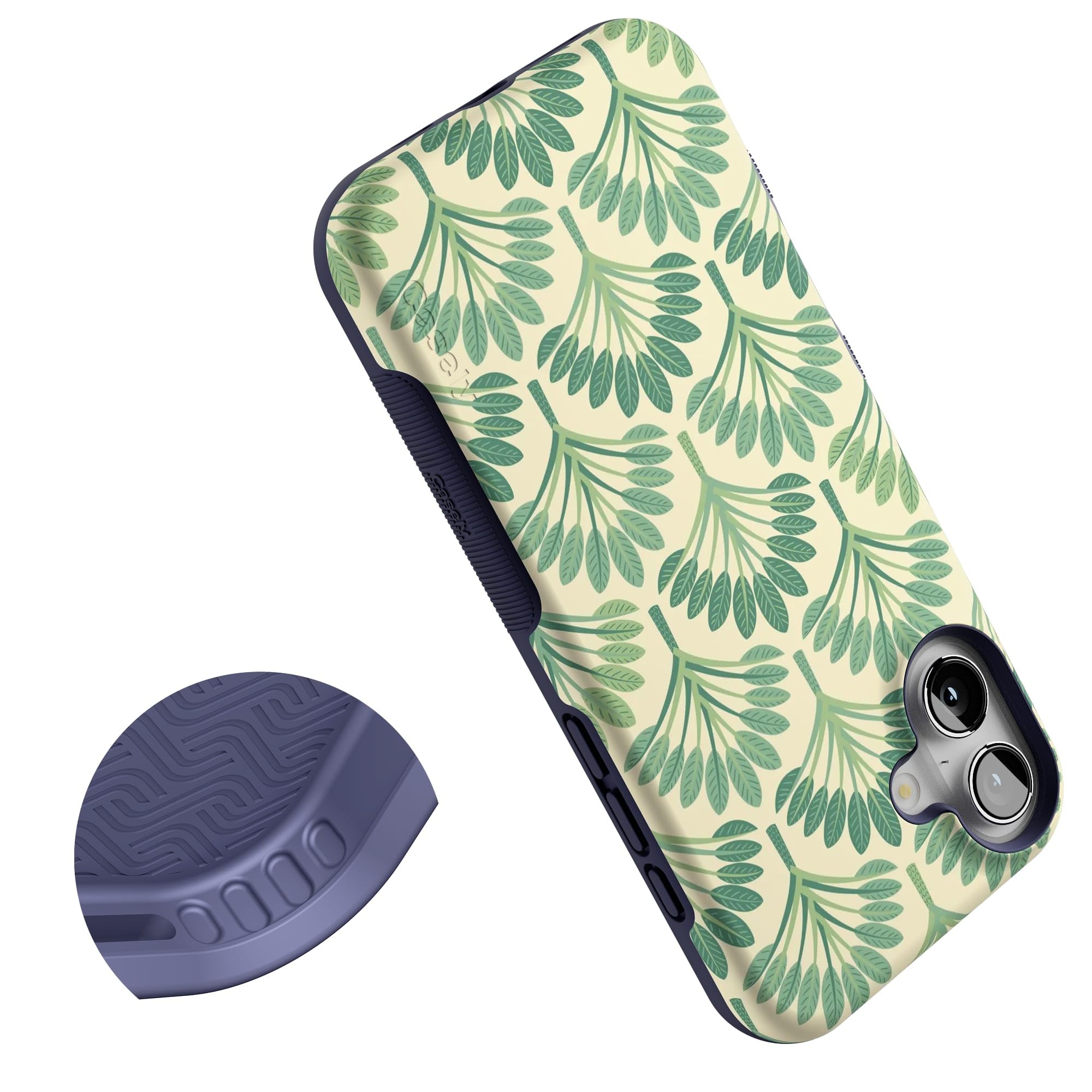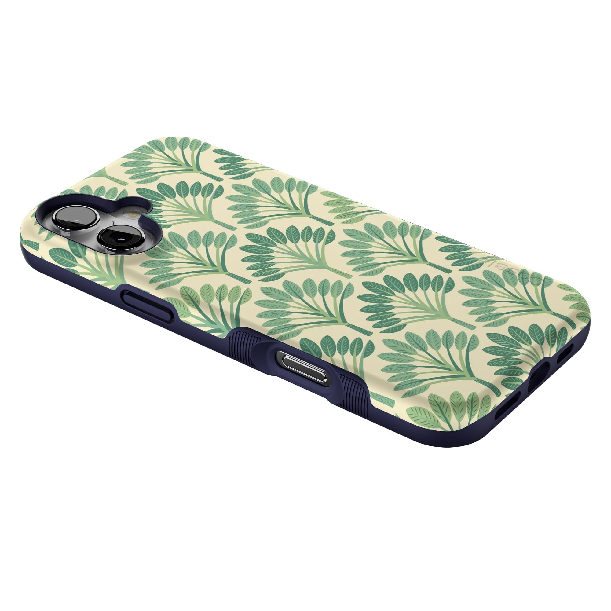 Palm Royale is a love letter to resort luxury. This elegant case features hand-drawn palm fronds in rich green shades layered over a warm, creamy backdrop—like retro wallpaper from a boutique hotel or a breezy sundress made for sipping cocktails in the shade. It's refined, timeless, and effortlessly cool. Perfect for daydreamers, destination-lovers, and anyone who appreciates a touch of old-school glamour. One look and you'll swear you can hear the ocean.