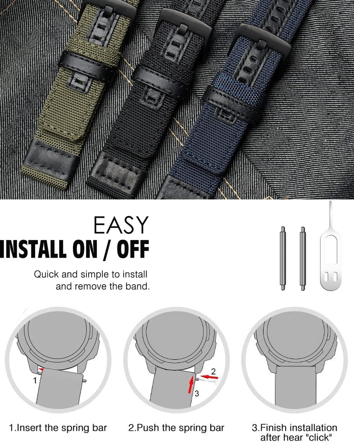 ⌚【Easy Installtion / Remove】Came with Tool-Pin, Garmin Instinct Tactical elastics band can be installed onto Garmin Instinct Watch Lugs (not included) on both ends. Secure enough to avoid the falling off. Easy and simple installation or removal.