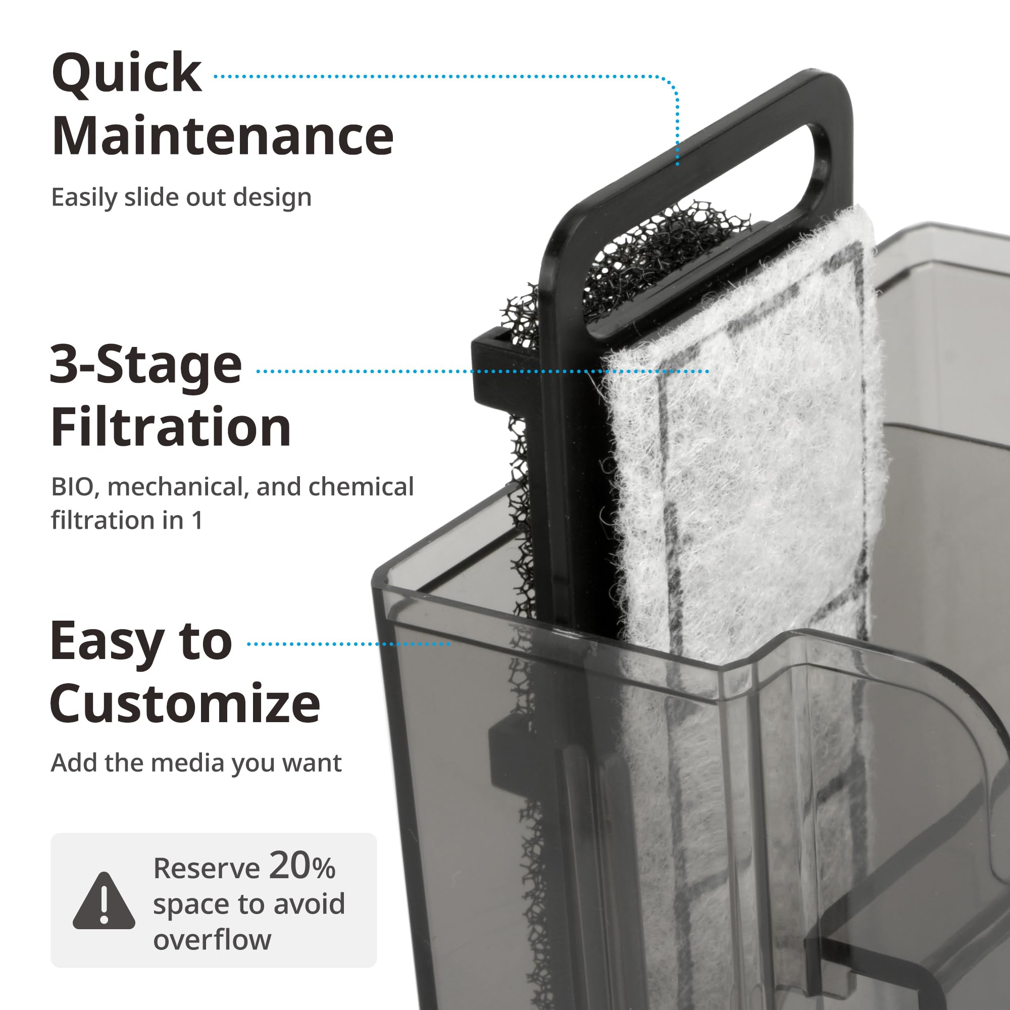 Slim and compact design, hardly noticeable on the tank, great choice for nano and pico tanks up to 5 gallons.