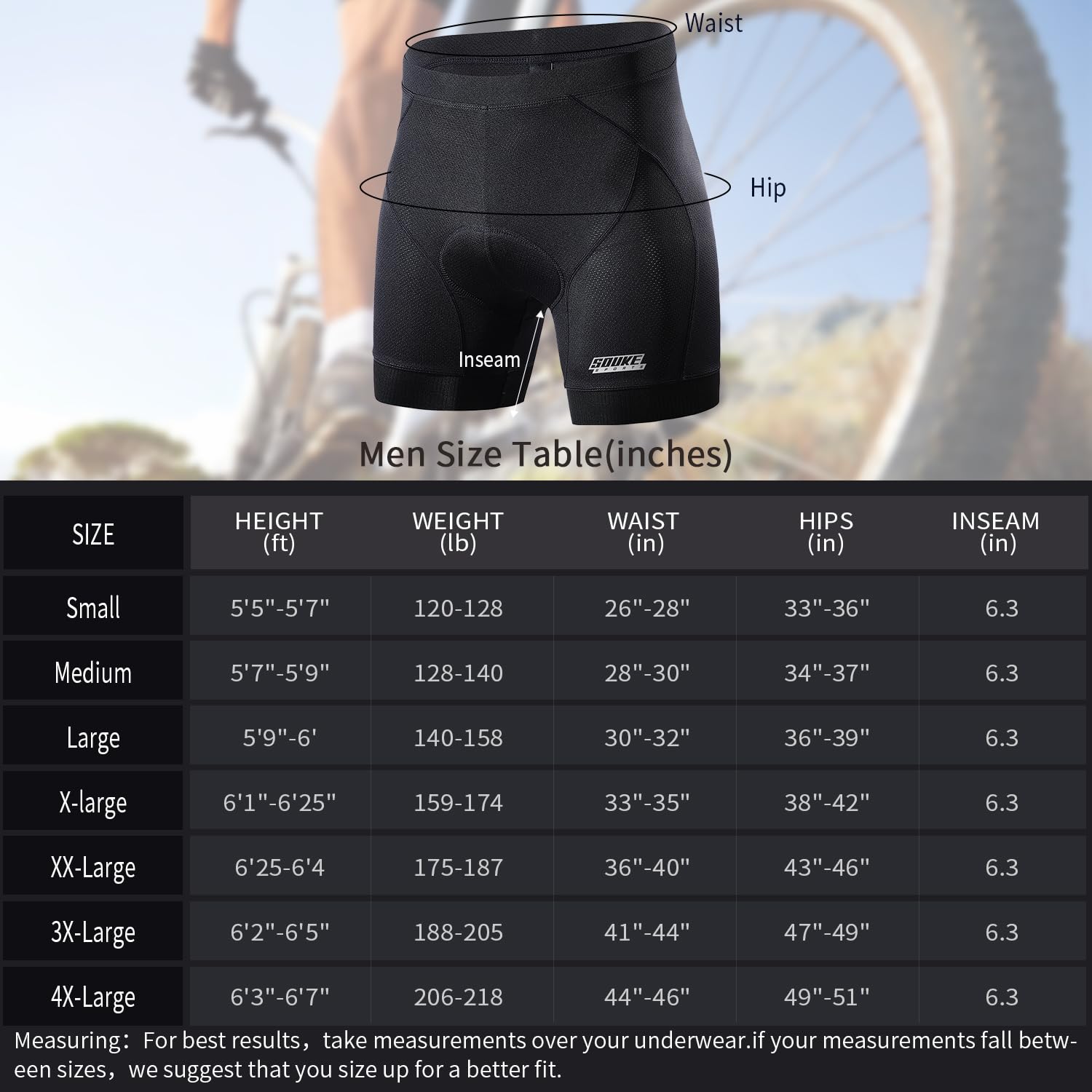 Wide Elastic Waistband: Compared with regular mountain bike padded underwear shorts, the soft, 1.4inch non-binding waistband does a great job of comfortably holding the shorts in place from the top for best performance.