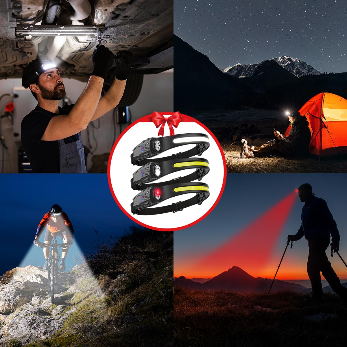 Waterproof & Comfortable to Wear: Waterproof headlights ensure that you don't have to worry about sudden rain or snow when using them outdoors. Whether you are camping, exploring, hiking, cycling, fishing, hiking, repairing, or other outdoor or indoor activities, head lights for forehead are your good assistant. The hard hat light features a small size and lightweight design, while also using an adjustable elastic headband that can be easily adjusted for comfortable wearing.