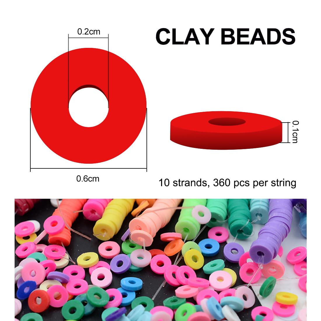 Package Contains: 10 strands of clay heishi beads for jewelry making, each string has about 360 pieces clay beads. The bracelet making beads are sized 6 mm in diameter, 2 mm in hole diameter. Enough quantities to creat 50 pcs bracelets.