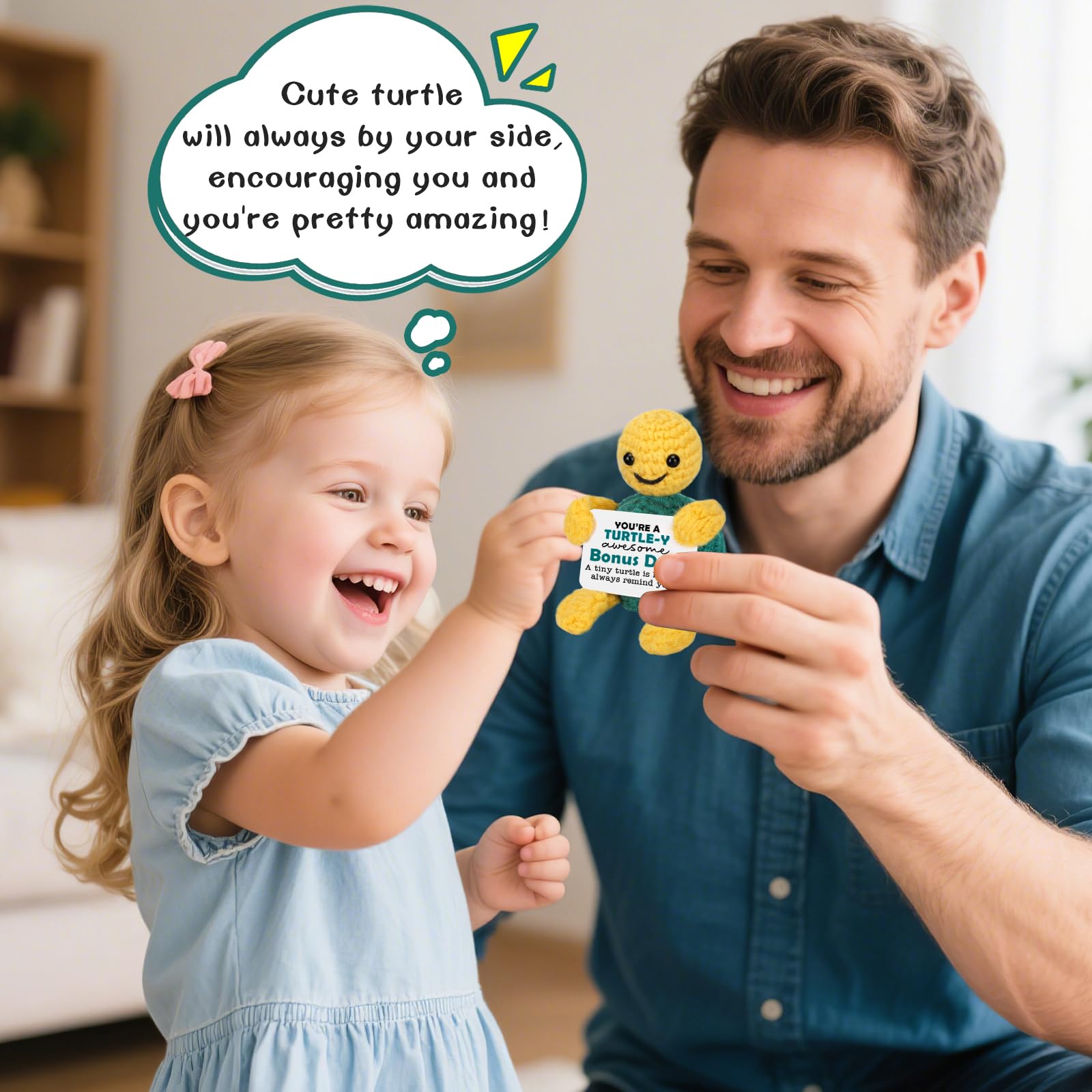 Handmade Crochet Turtle: Cute turtle is hand knitted with wool yarn, soft, comfortable and durable, you can take it anywhere. It is not just a mini turtle doll, It comes with words of love for bonus dad, stepdad, and will always remind him that you will always love him!