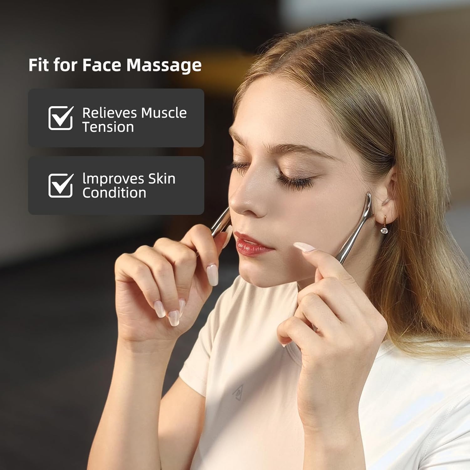 304 Stainless Steel, Durable & Easy to Clean: Made of premium stainless steel, no plating, never oxidate. With fine polishing, this fascia pen's surface is skin-friendly, you can use it on the face. It helps to promote blood circulation, reduce puffiness, sculpt the jawline, nourish the skin, and relieve tension.In addition, it can also be used to improve non-obese double chins and facial asymmetry caused by fascia tension.