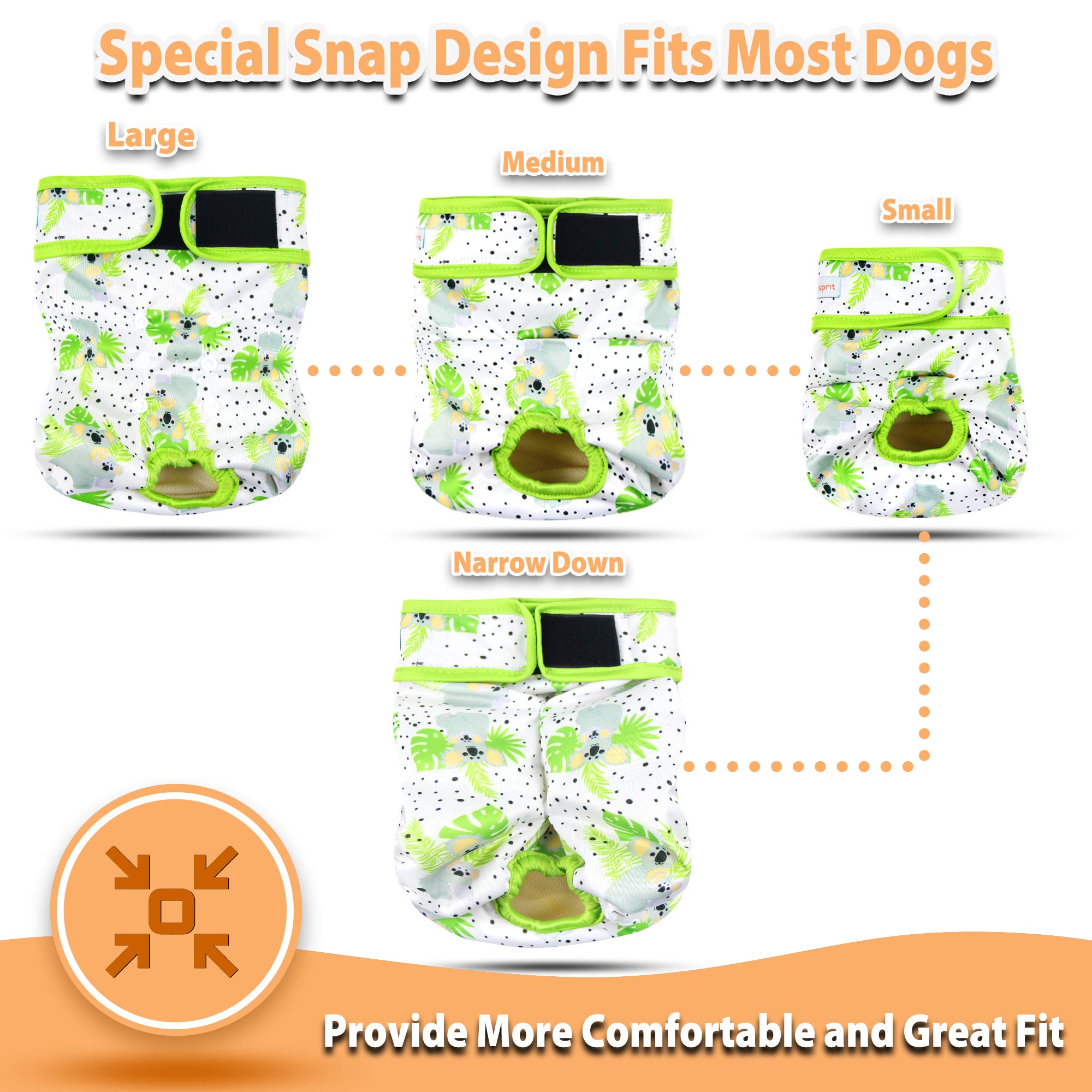 Special Button Design - The washable dog diaper have extra snap buttons at the back,snap up & down for shortening length of diaper, Snap left & right to adjust baggy excess fabric, give dog more comfortable and great fit.
