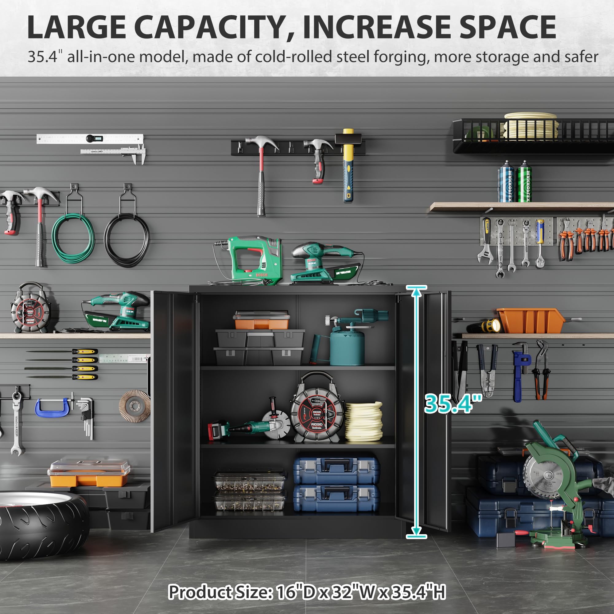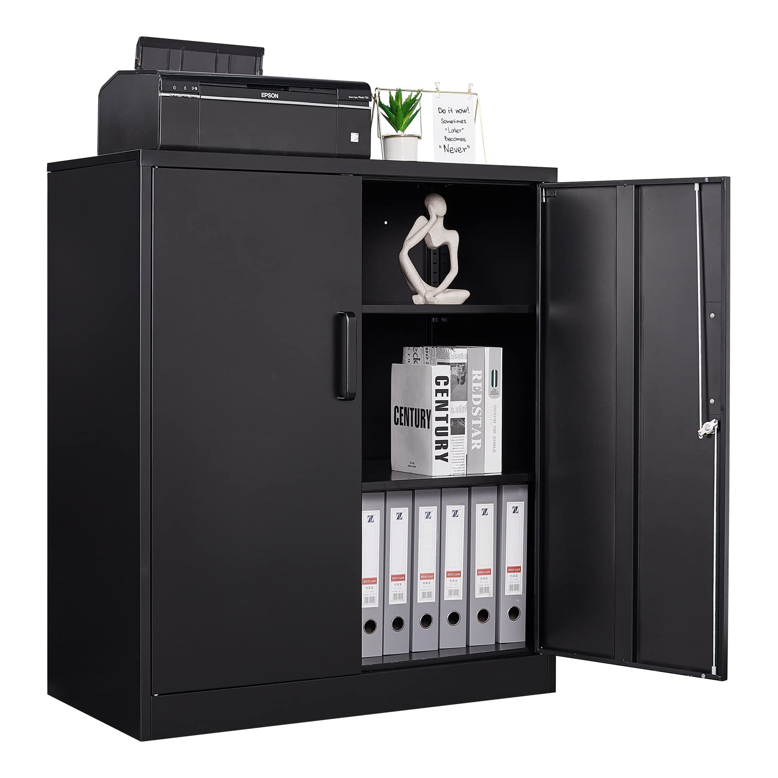 ✔️【Large Storage Space】: 36"H x 31.5"W x 15.8"D ,locking cabinet maximum load capacity : 440 lbs, Each shelve can bearing 180 lbs; Our metal storage cabinet are equipped with 2 adjustable shelves; You can put printer, scanner, fax machines, or anything you want on the top, it will be provide a great support for you.
