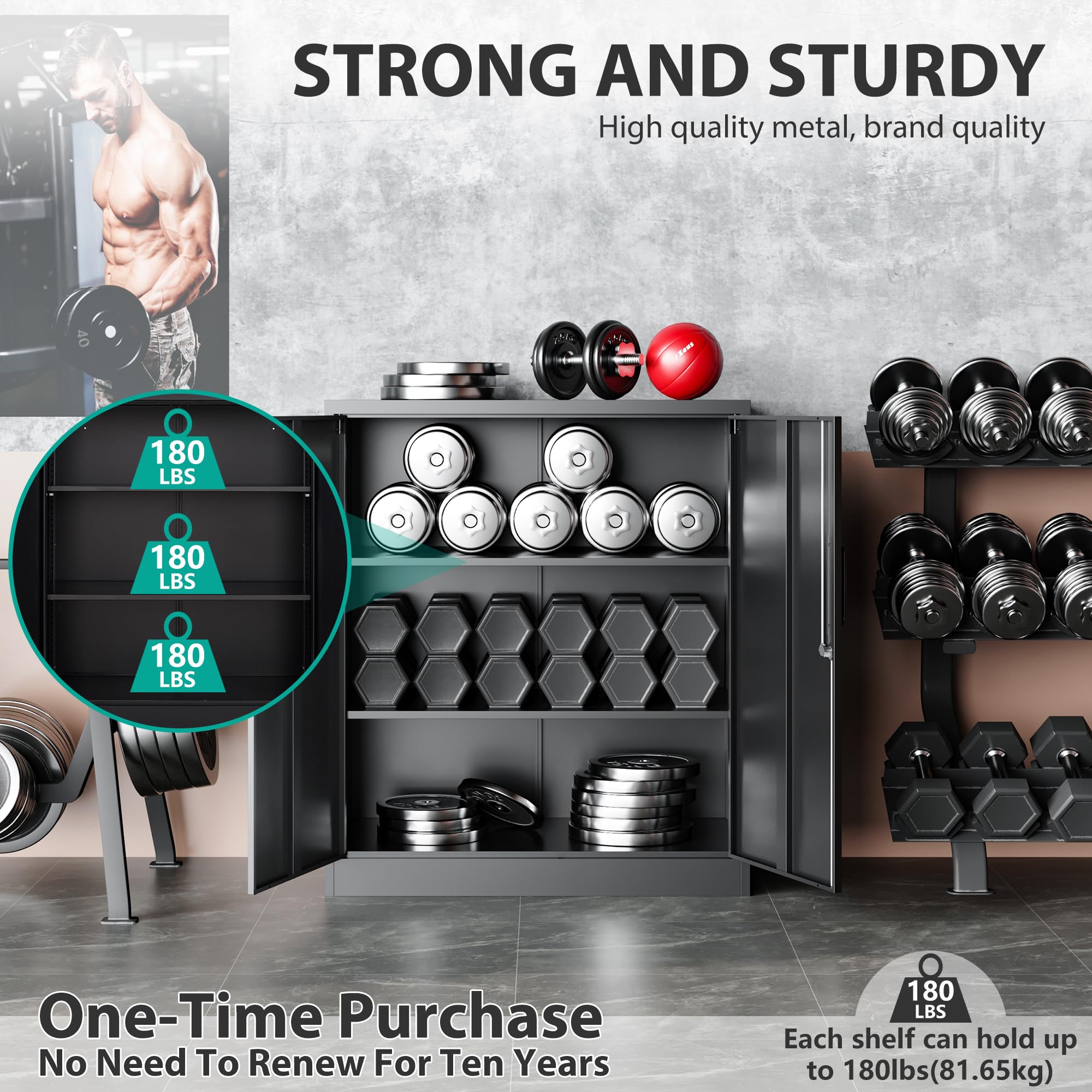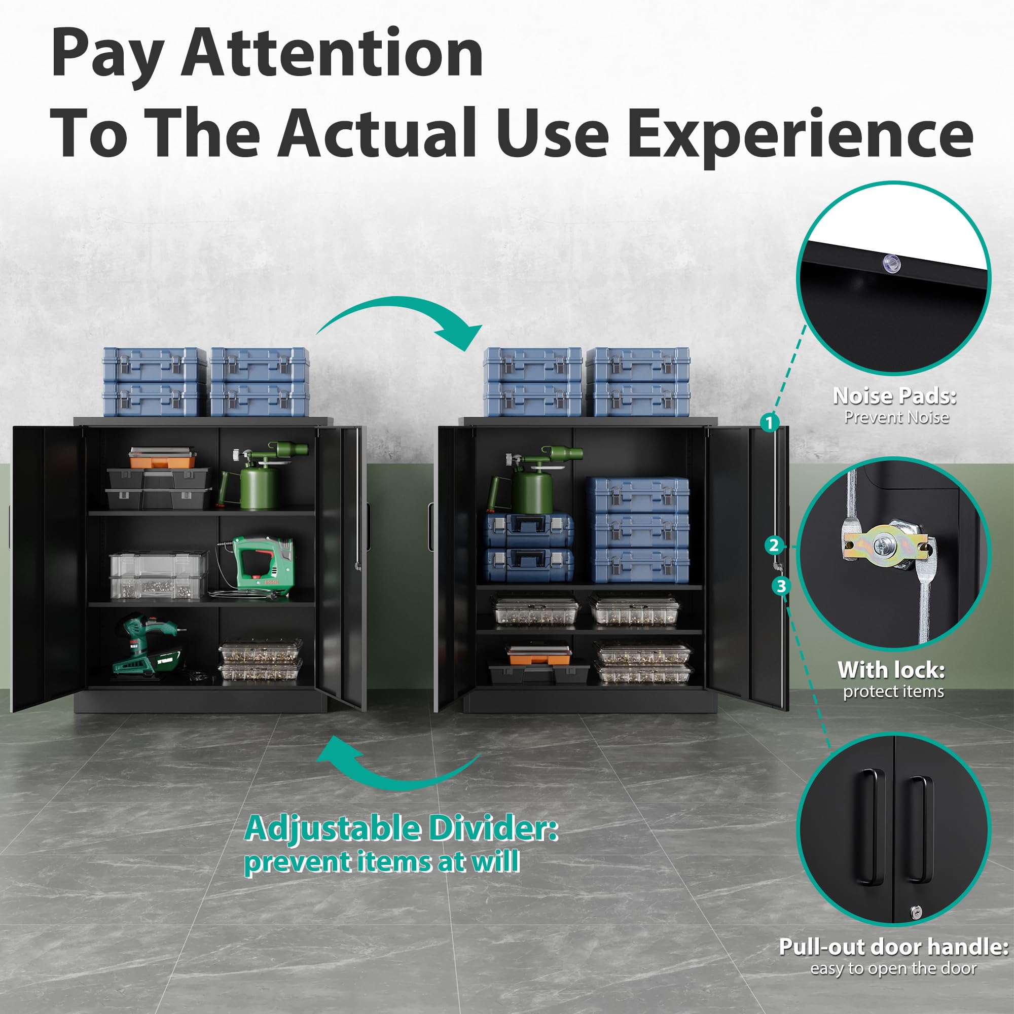 ✔️【High-quality all-steel structure】: This metal cabinet is made of the top quality steel through exquisite craftsmanship; Whole-in-one reinforced heavy gauge steel deluxe welded frame; 2 locking doors are also strengthened by with additional steel bars; The special coating can protect cabinet from scratch and rust; Durable and available for years.