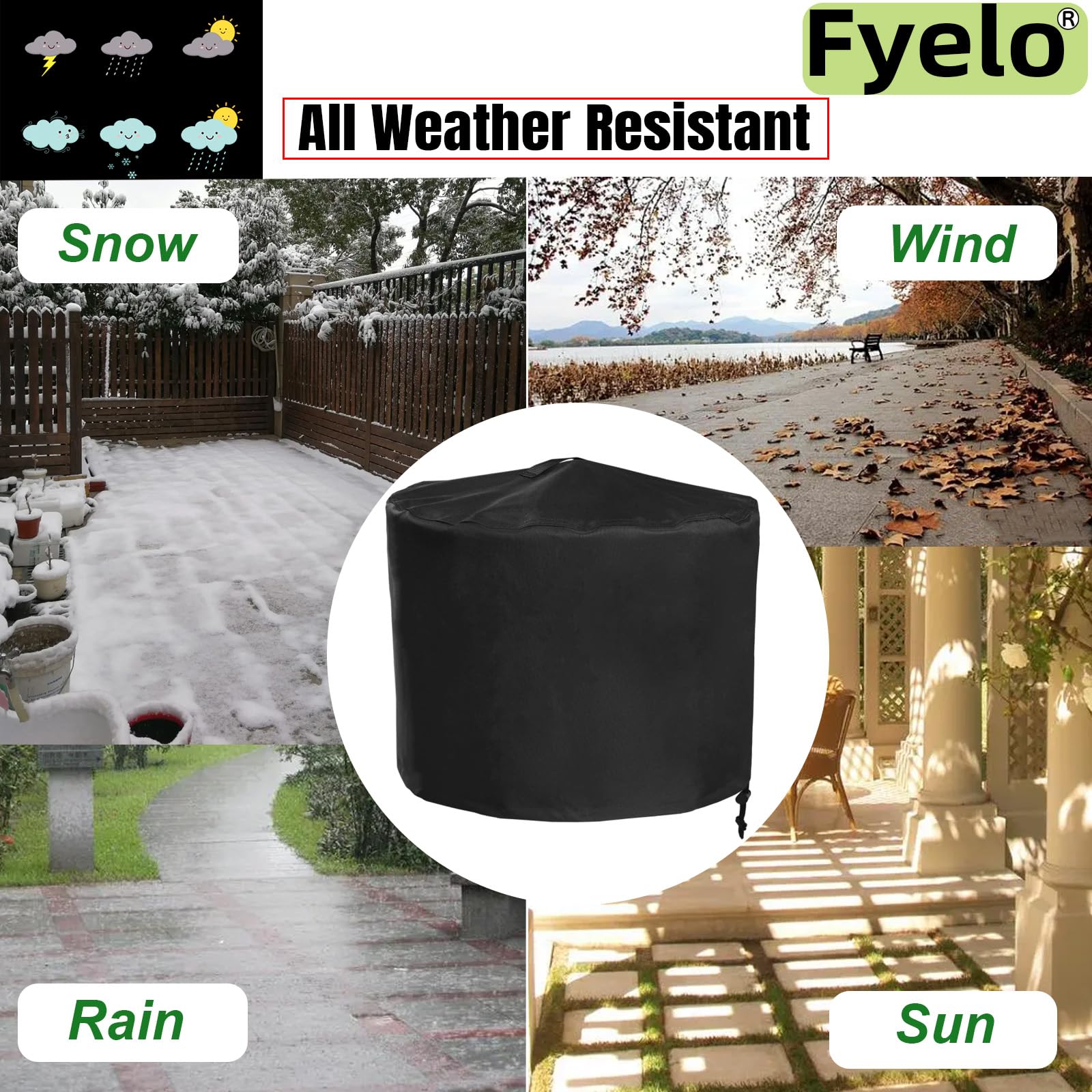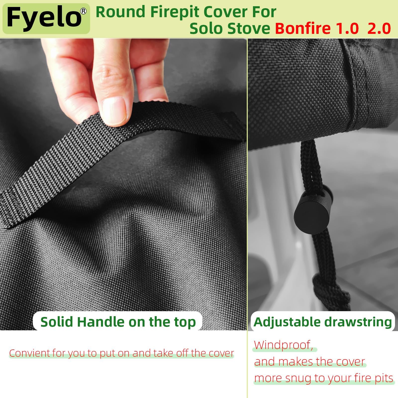 ☑ Top handle of the fire pit cover is convient for you to take on or take off. And the bottom adjustable drawstring make the cover fit your fire pit better, and windproof.