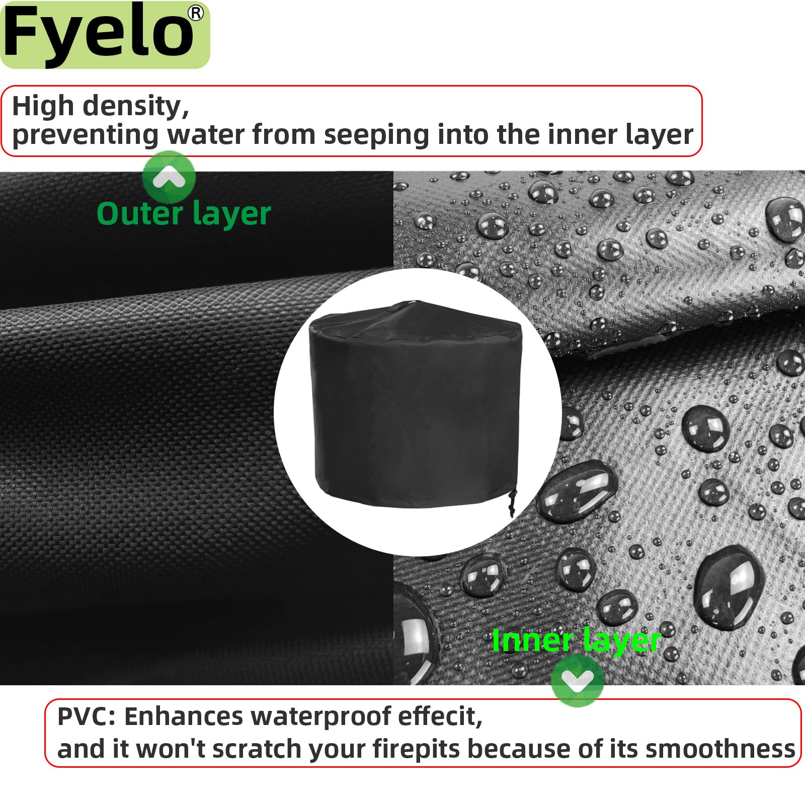 ☑ The inner layer is covered with PVC , which is smooth, without burrs, very friendly to your round fire pits, because it won't scratch your firepits, and the PVC enhances waterproof effect, protect your fire pits, fire bowl in bad weather such as rain, snow, frost, etc.