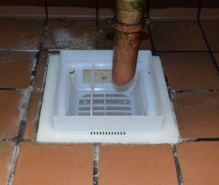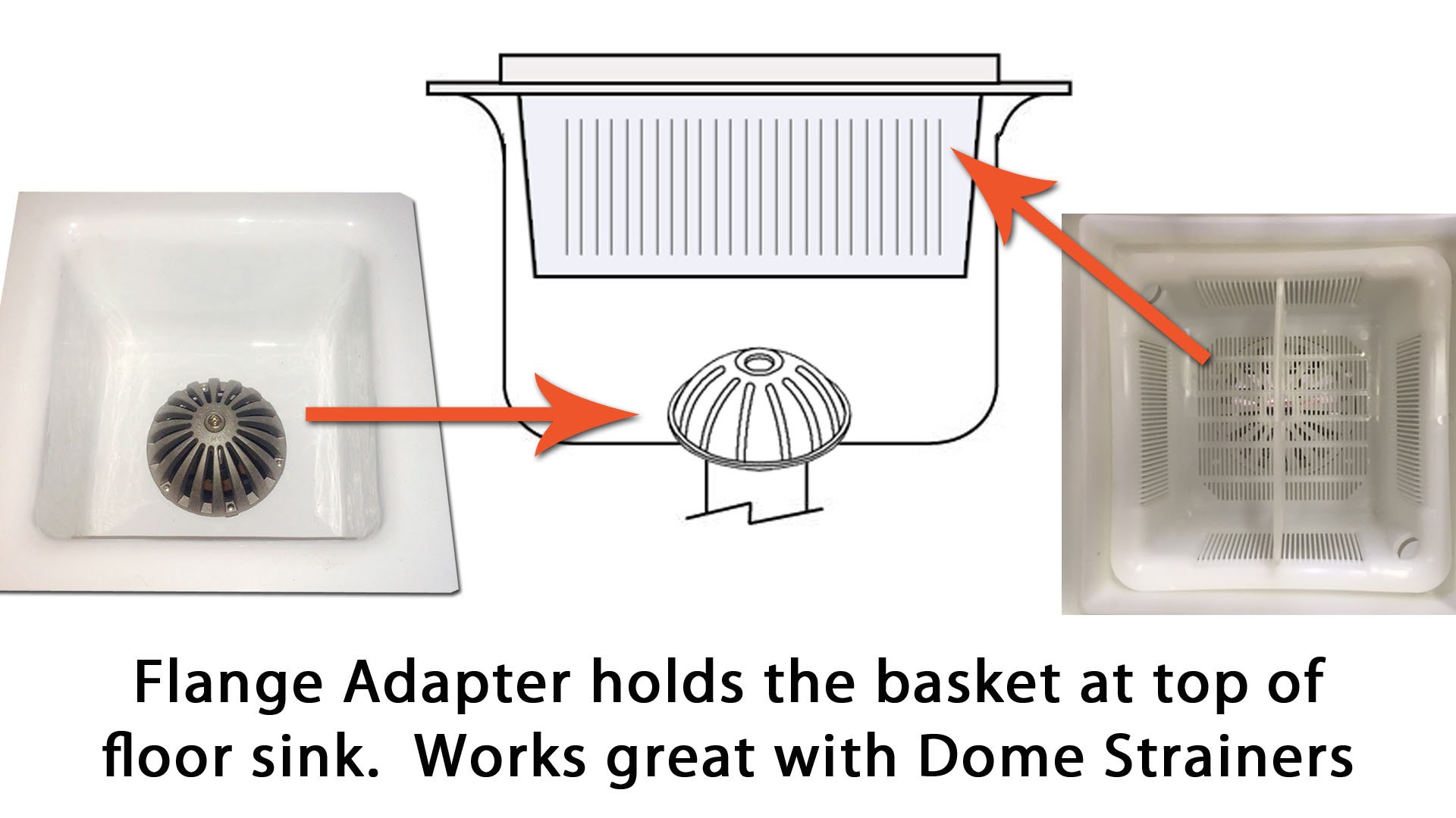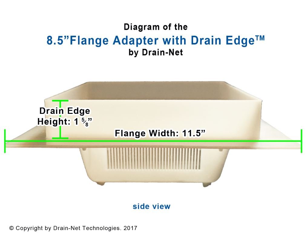 The Flange Adapter covers ugly floor sinks. Can sit loose or permanently installed with silicone adhesive. Fits most standard 8 1/2" floor sinks.