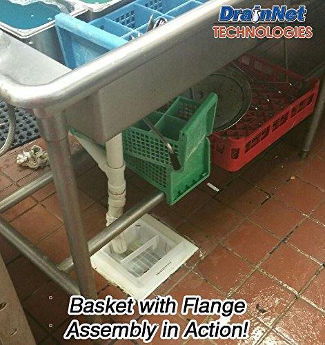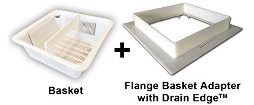This two-piece assembly is made of durable plastic that won't rust or easily break. Removable for cleaning and dishwasher safe. Allows for drainage on all 4 sides to allow water to continue to drain even as the basket fills up with debris. The safety handle allows for easy removal of the floor sink basket, so that the employee doesn't accidentally tip and dump out contents back into the drain. Thin design and adjustable position so that it does not inhibit water and cause splashing and wet floors. If the drain pipes are positioned over the center, simply pop the handle out and insert it into a position closer to the side. The 12" Flange Basket Adapter elevates Drain Basket - Now your favorite floor sink basket can be used with dome strainers. You no longer need to use domed baskets which have significantly less holding capacity. Smart Design for drain overflow. Water overflows back into the drain... not the floor! The 12" Flange covers ugly and rusted floor sinks. The Drain Edge is an effective trash blocker - Employees and nigh crews can't sweep trash into floor sink baskets. he Drain Edge provides Splash Prevention - The Drain Edge prevents water from splaying onto the floor, increasing safety and preventing slip and fall accidents. Helps you meet National Plumbing Code with proper air gap, while still preventing splashing.