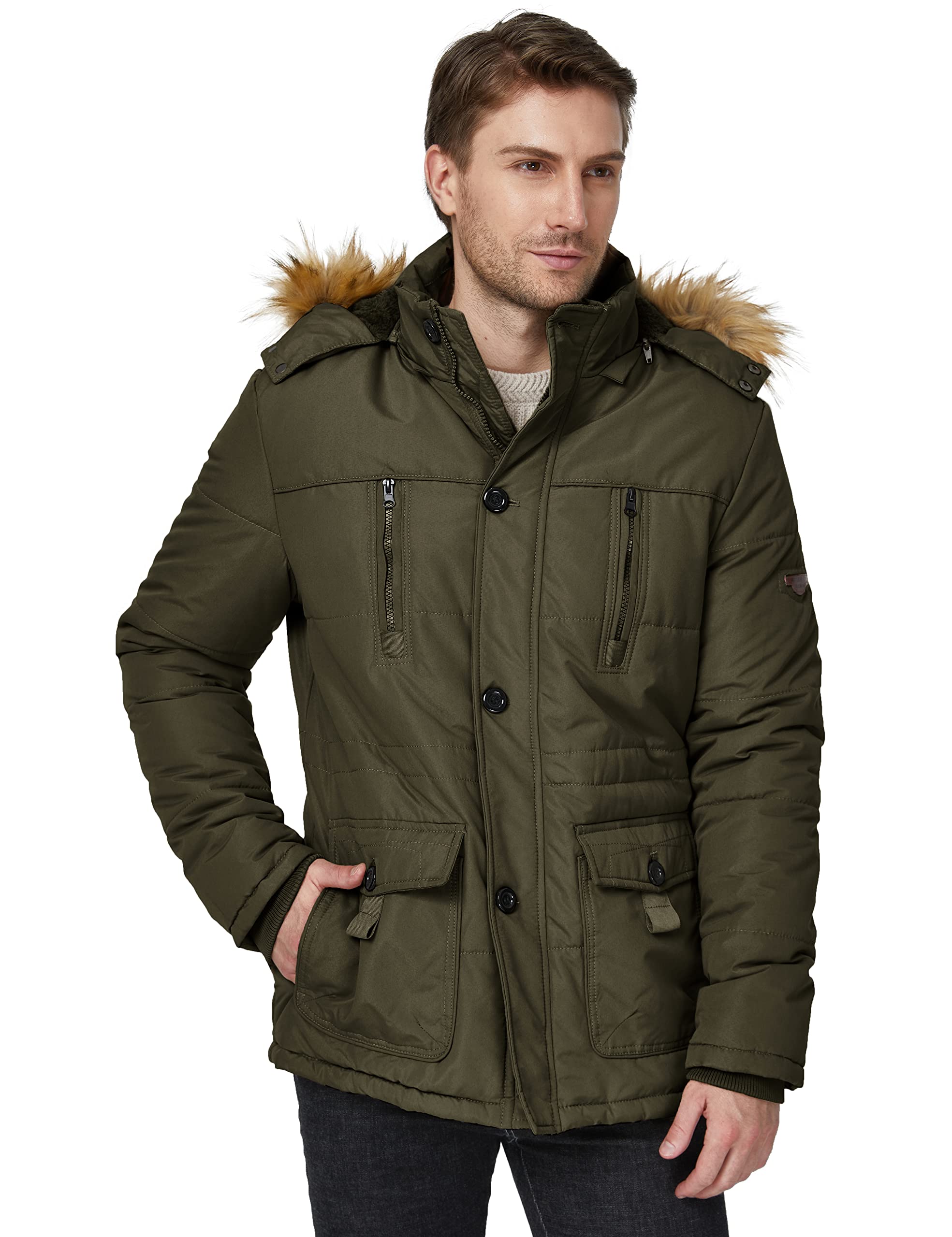 Tailored to your preference - You can style this mens parka however you want! It has an adjustable and detachable zippered hood as well as a removable faux fur trim if you prefer a simpler look.