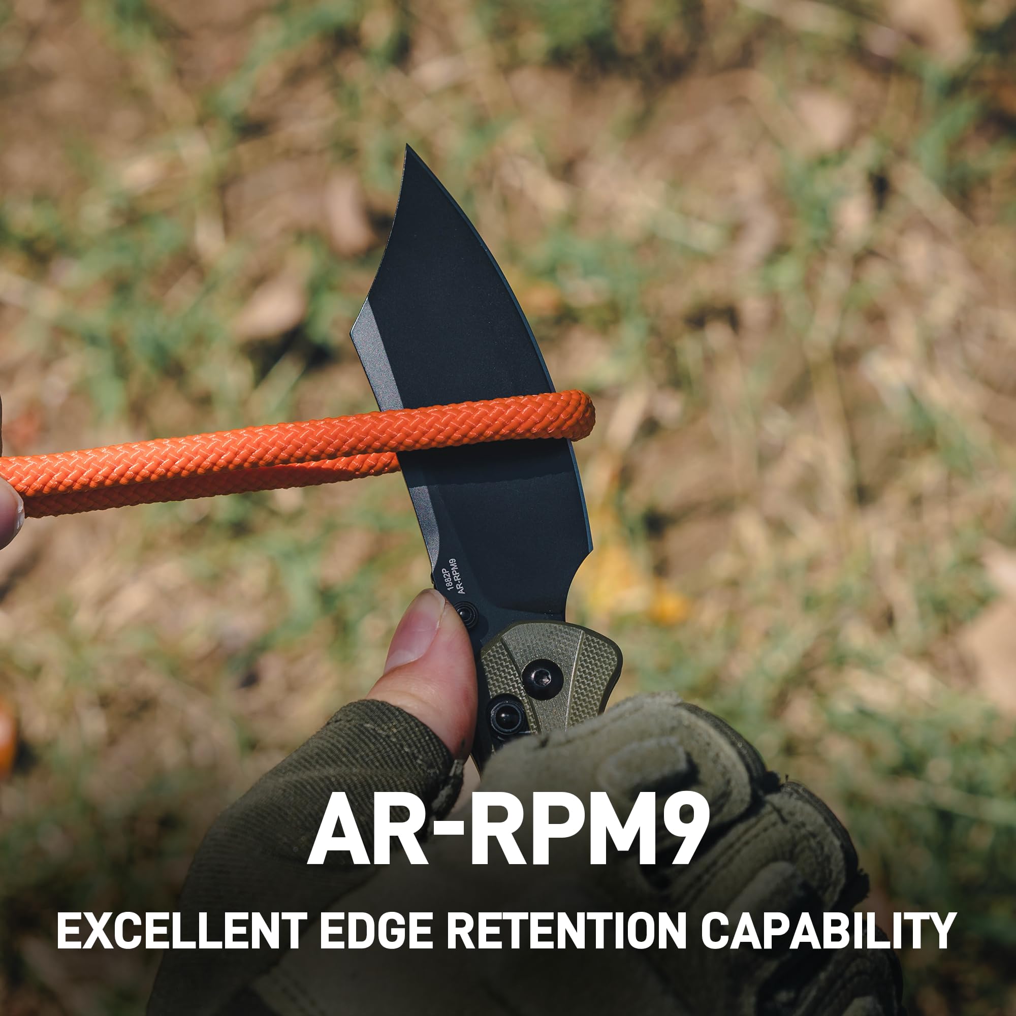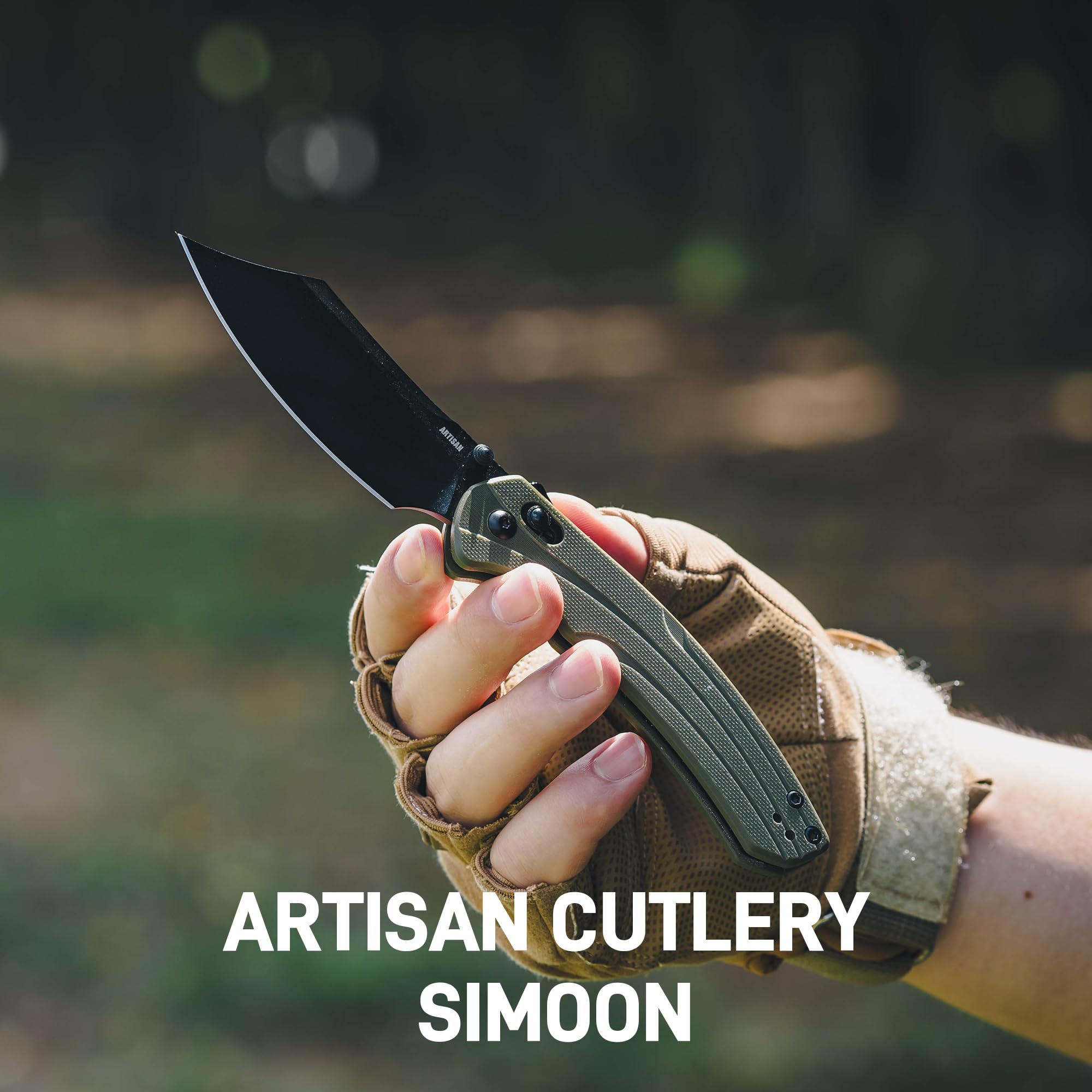Precision AR-RPM9 Blade: The Artisan Simoon pocket knife features a 3.47'' AR-RPM9 steel blade in a Bowie style, with a hardness of HRC59-61. It delivers excellent precision and long-lasting durability, making it reliable for a variety of cutting needs