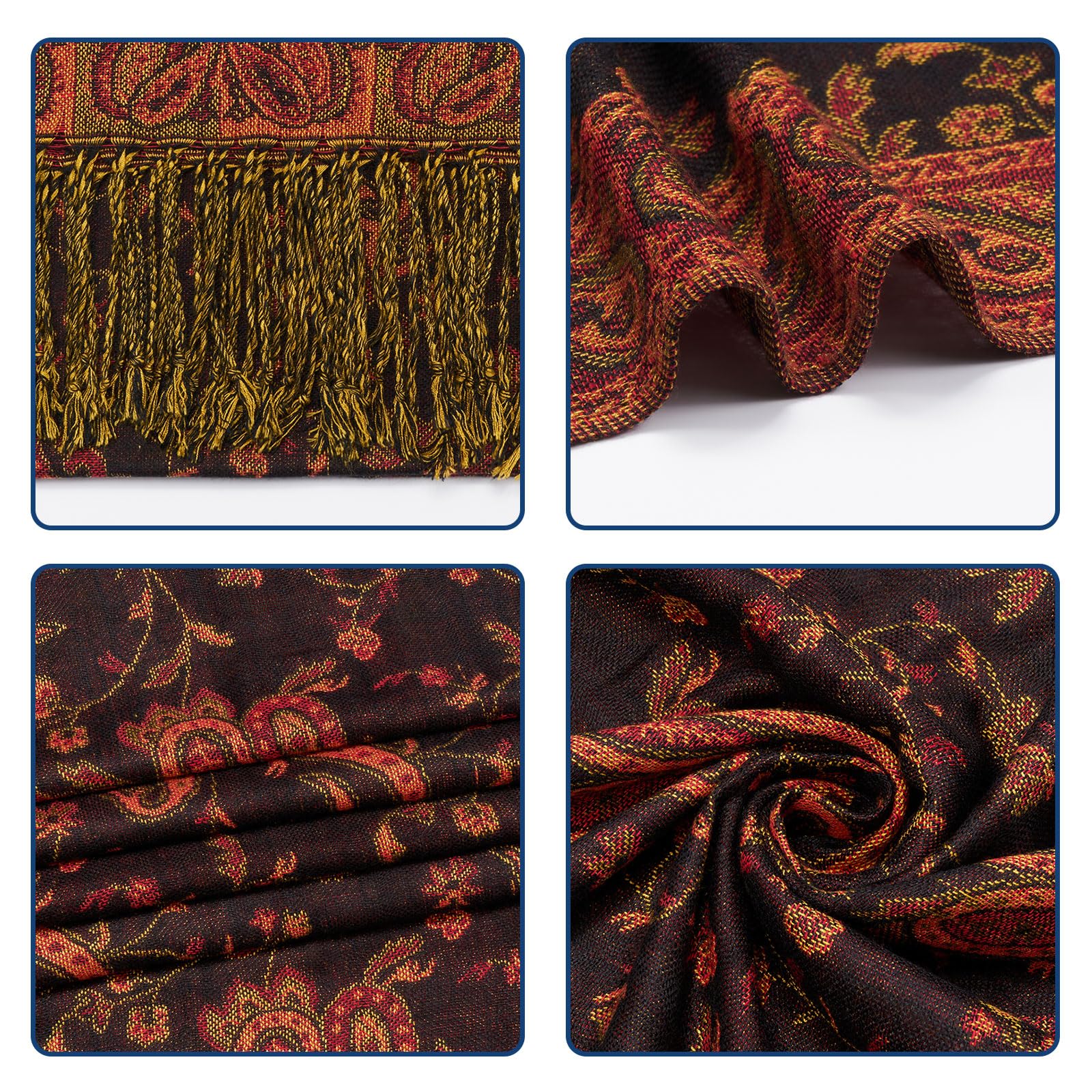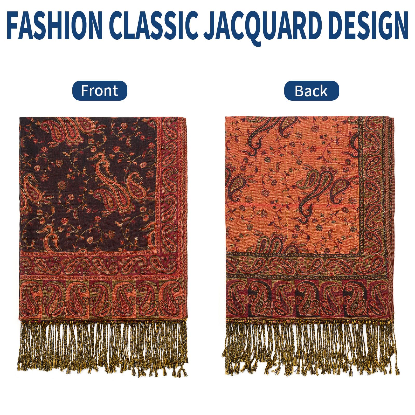 ★DOUBLE SIDED JACQUARD DESIGN - Our indian shawl is double-sided wearable design, the different colors of the two sides add more choices for your matching. The exquisite and unique jacquard details are exotic, very elegant and sophisticated, which will show off your fashionable taste whether it is for daily wear or special occasions. In addition, this pashmina wrap is also ideal as a luxurious and thoughtful gift for your mother, wife or girlfriend on Christmas, birthday or anniversary.