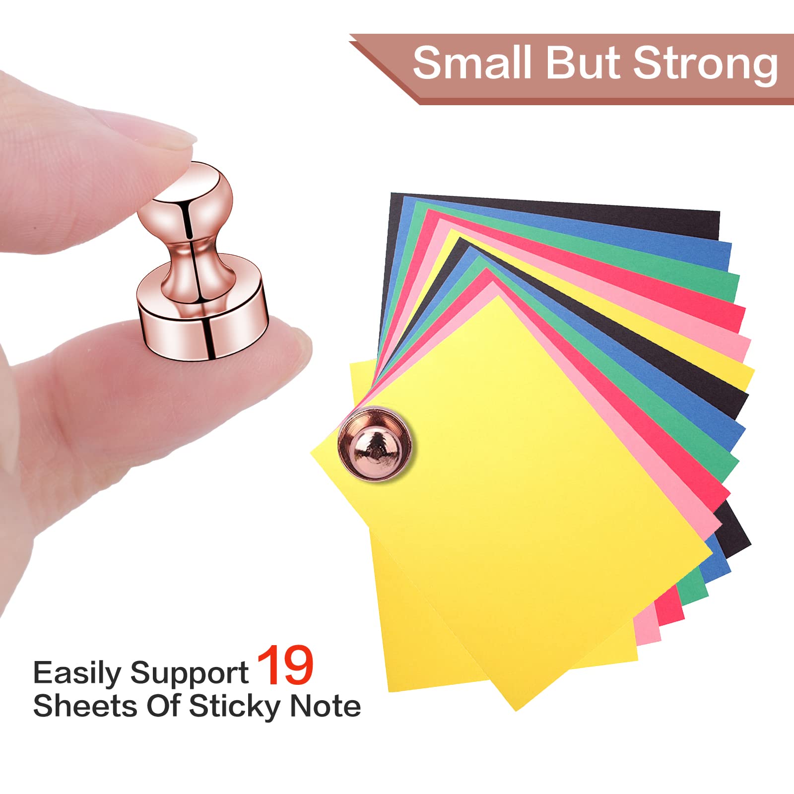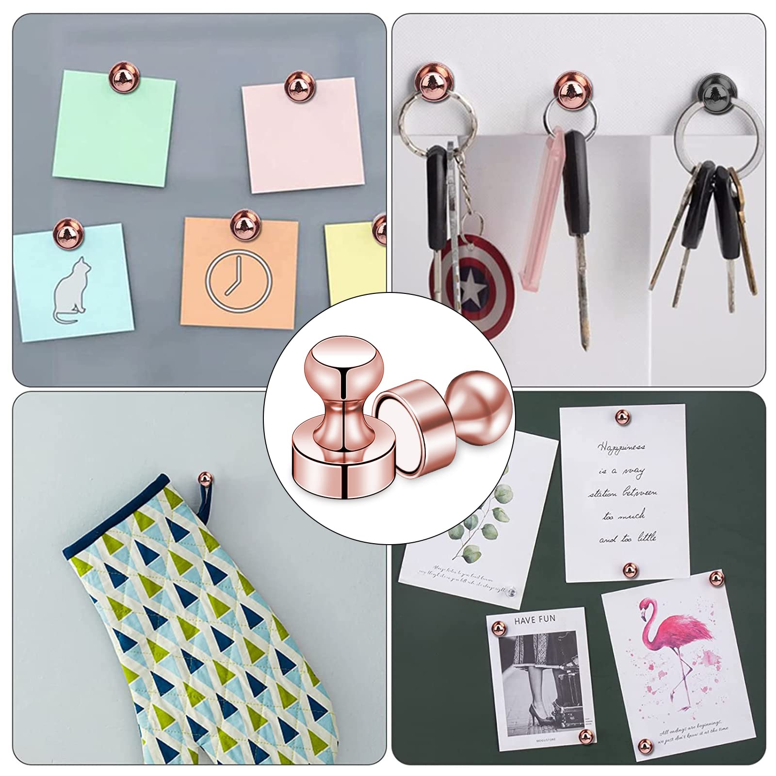 【HIGH QUALITY】:Fridge magnet is plated with 3 layers of protective coating- rose gold paint + nickel + copper, which greatly protects push pins magnets from corrosion and is sturable.