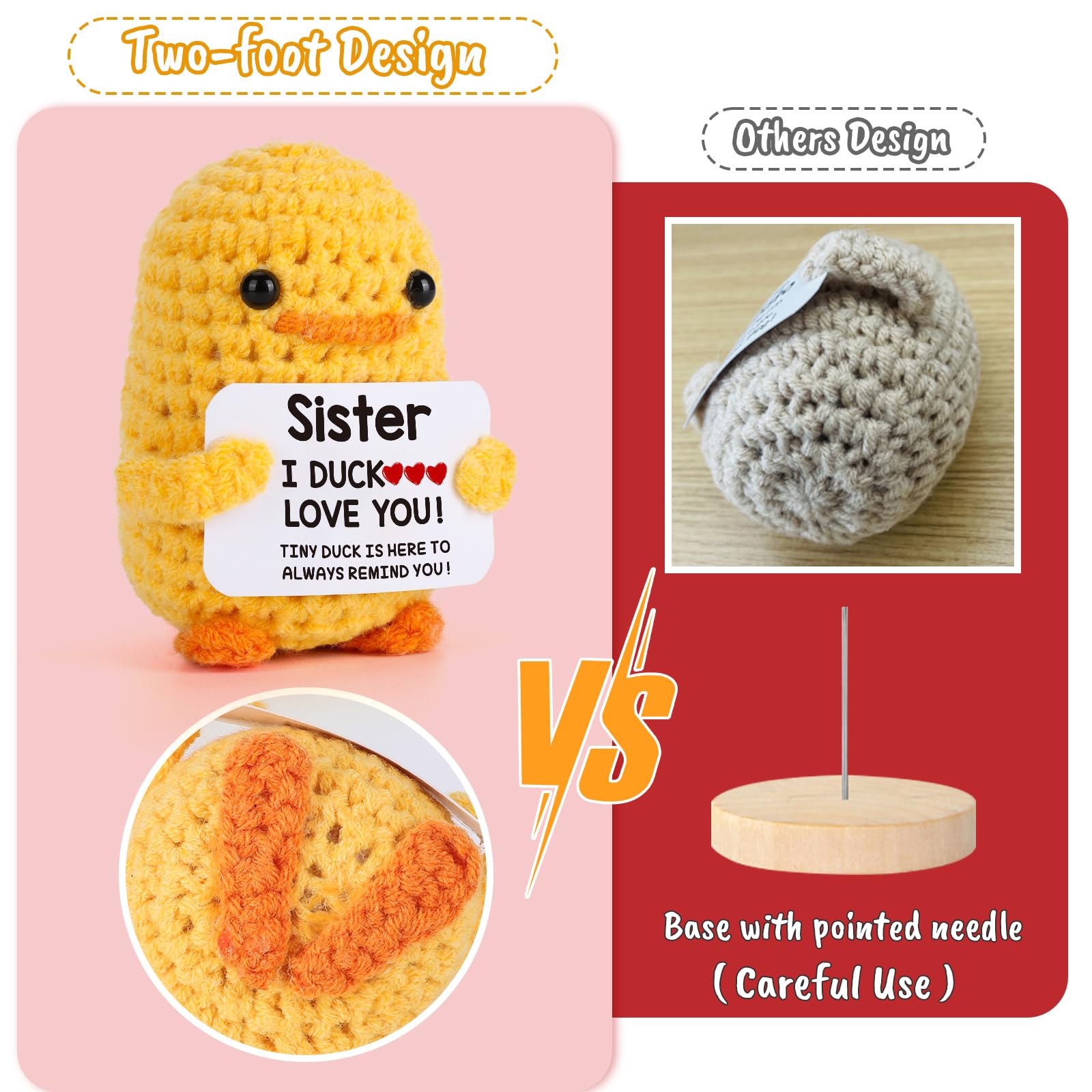 High-Quality Knitted Duck for Sister: This crochet duck is made with high-quality yarn, meticulously hand-stitched to create an appealing look. Each duck is handcrafted with crochet, making it unique and one of a kind, just like your sister. Measuring approximately 3.14 x 2.36 inches, this crochet duck is compact and can easily be carried in backpacks.