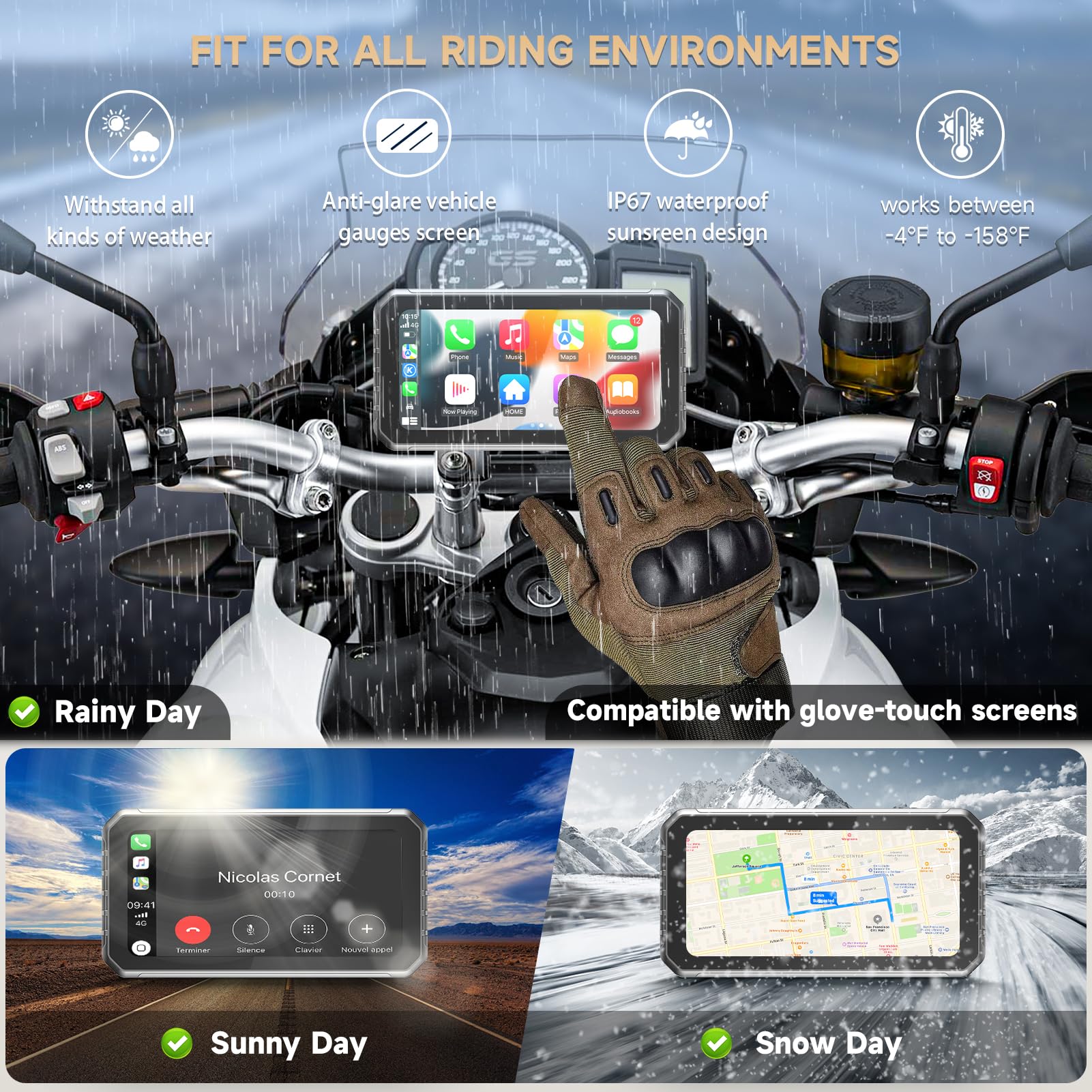 Weather-Resistant Design for All-Road Conditions: Ride confidently with the CL872’s IP65 waterproof body . The upgraded waterproof touch screen responds flawlessly in the rain, making it ideal for any weather condition you might encounter on your motorcycle