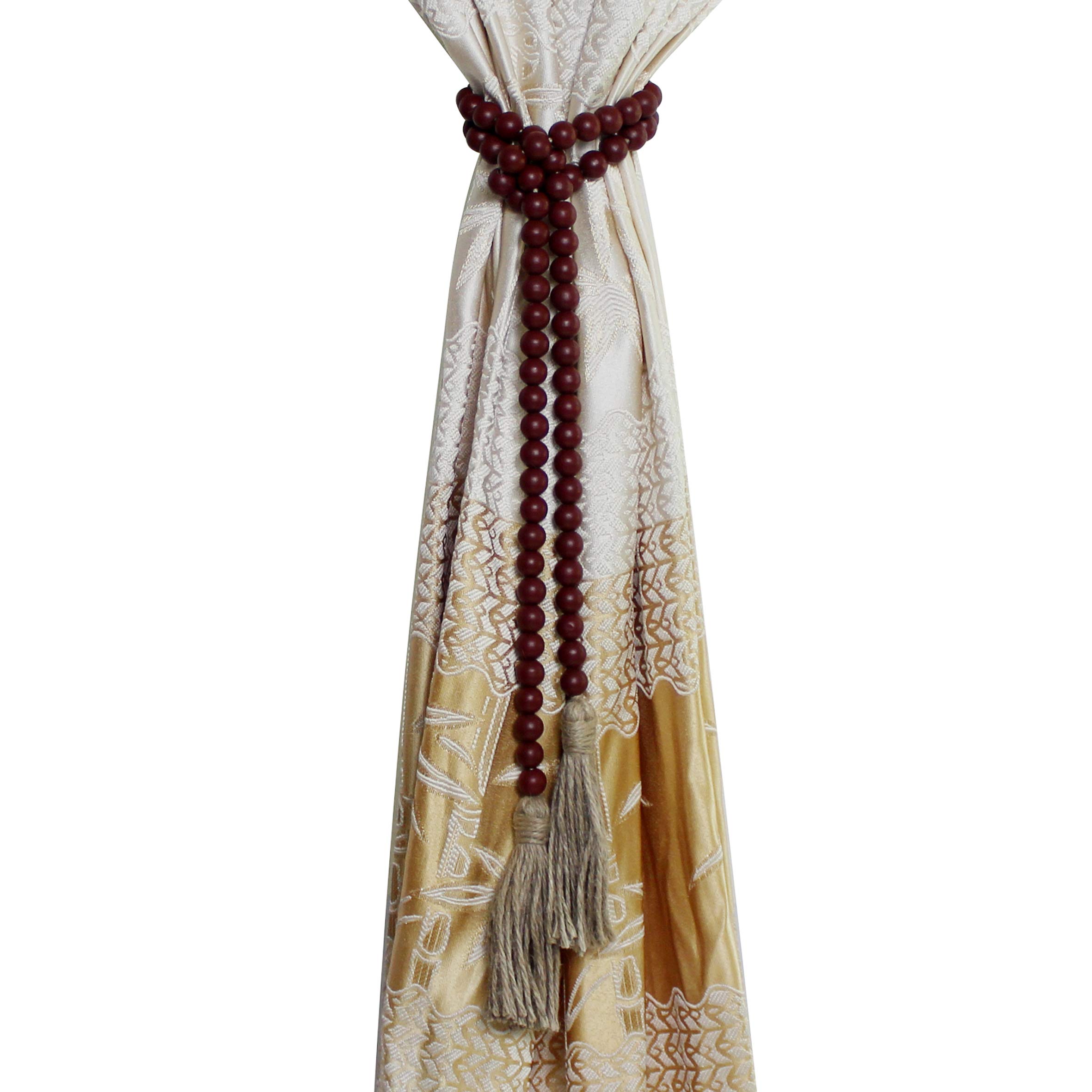 Measures: total length is 59", the diameter of wooden beads is 5/8"(16 mm), burgundy beads finish