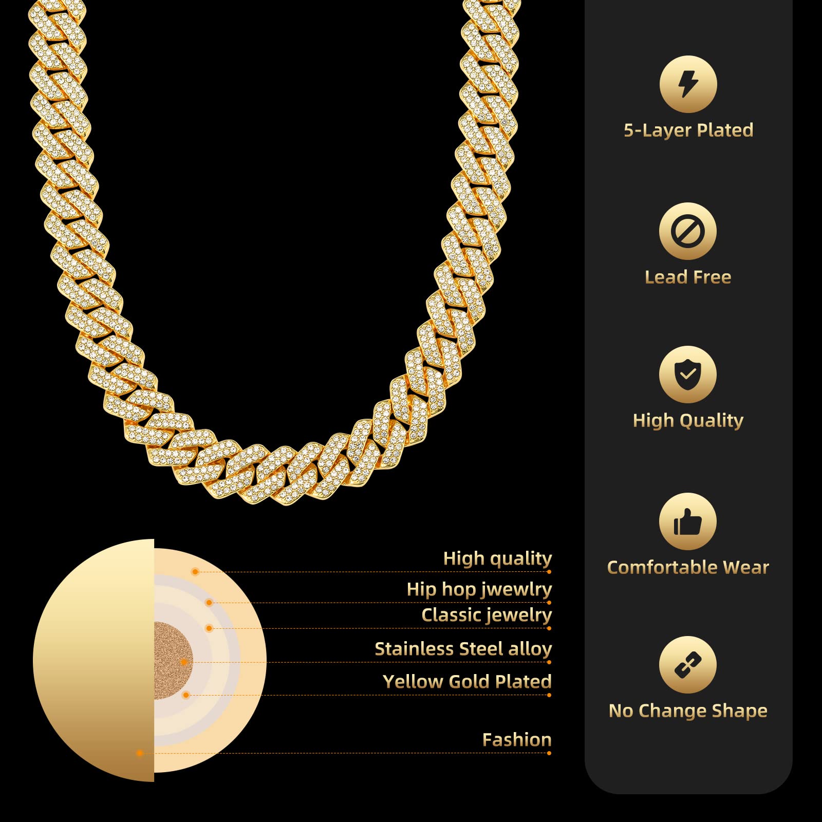 The diamond chains feature over AAA+ rated Rhinestone.Durable and supper sparkly shining.Cuban necklace chain is nickle-free,lead free,harmless to health.