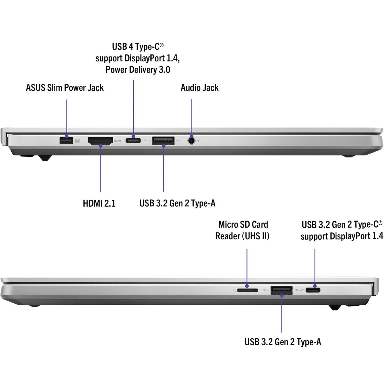 The ROG Zephyrus G14 has been redesigned with an all-new premium aluminum chassis for increased durability and elegance. At 0.63 inches thin and weighing in at just 3.31lbs, this gaming powerhouse combines portability with cutting-edge technology. Featuring Windows 11 and an NVIDIA GeForce RTX 4060 GPU, the Zephyrus G14 achieves unparalleled gaming performance. The AMD Ryzen 9 8945HS processor further enhances productivity with 16 TOPS in AI Performance. The Zephyrus G14 features an OLED ROG Nebula Display. Enjoy rapid 0.2ms response times and a smooth 120Hz refresh rate. Elevate your audio experience with new upgraded woofers, offering a 252% volume increase, 100Hz bass frequency, and Dolby Atmos support. For intense gaming sessions, the ROG Intelligent Cooling integrates liquid metal and aerodynamic 2nd Gen Arc Flow Fans to sustain peak performance. Operating System: Microsoft Windows 11 Home Display: 14" 3K (2880 x 1800) 120Hz 0.2ms OLED ROG Nebula Display (100% DCI-P3) Graphics Card: NVIDIA GeForce RTX 4060 8GB GDDR6 Graphics Card w/ ROG Boost up to 1940MHz at 90W (1890MHz Boost Clock+50MHz OC, 65W+25W Dynamic Boost) Processor: AMD Ryzen 9 8945HS 8 Cores (4.0GHz-5.2GHz, 16MB Cache, 45W) Networking: Wi-Fi 6E (802.11ax) (Triple band) 2x2 (Wireless LAN) + Bluetooth 5.3 Ports: Type C USB 4 support DisplayPort / power delivery, USB 3.2 Gen 2 Type-C support DisplayPort, 2x USB 3.2 Gen 2 Type-A, HDMI 2.1, RJ-45 Jack, Micro SD Card Reader, 3.5mm Combo Audio Jack Keyboard: Backlit Chiclet Keyboard 1-Zone RGB Battery: 73WHrs, 4S1P, 4-cell Li-ion