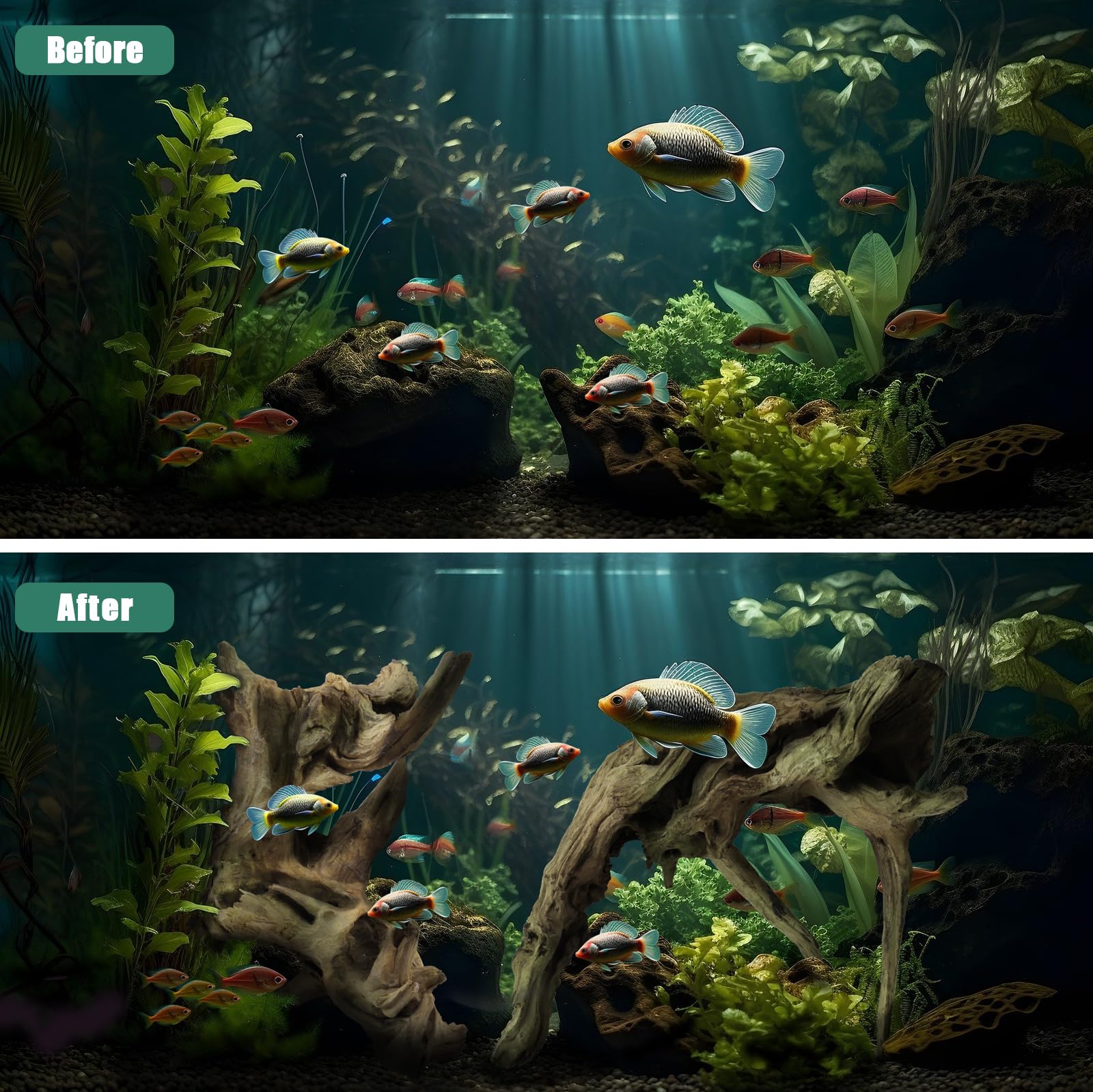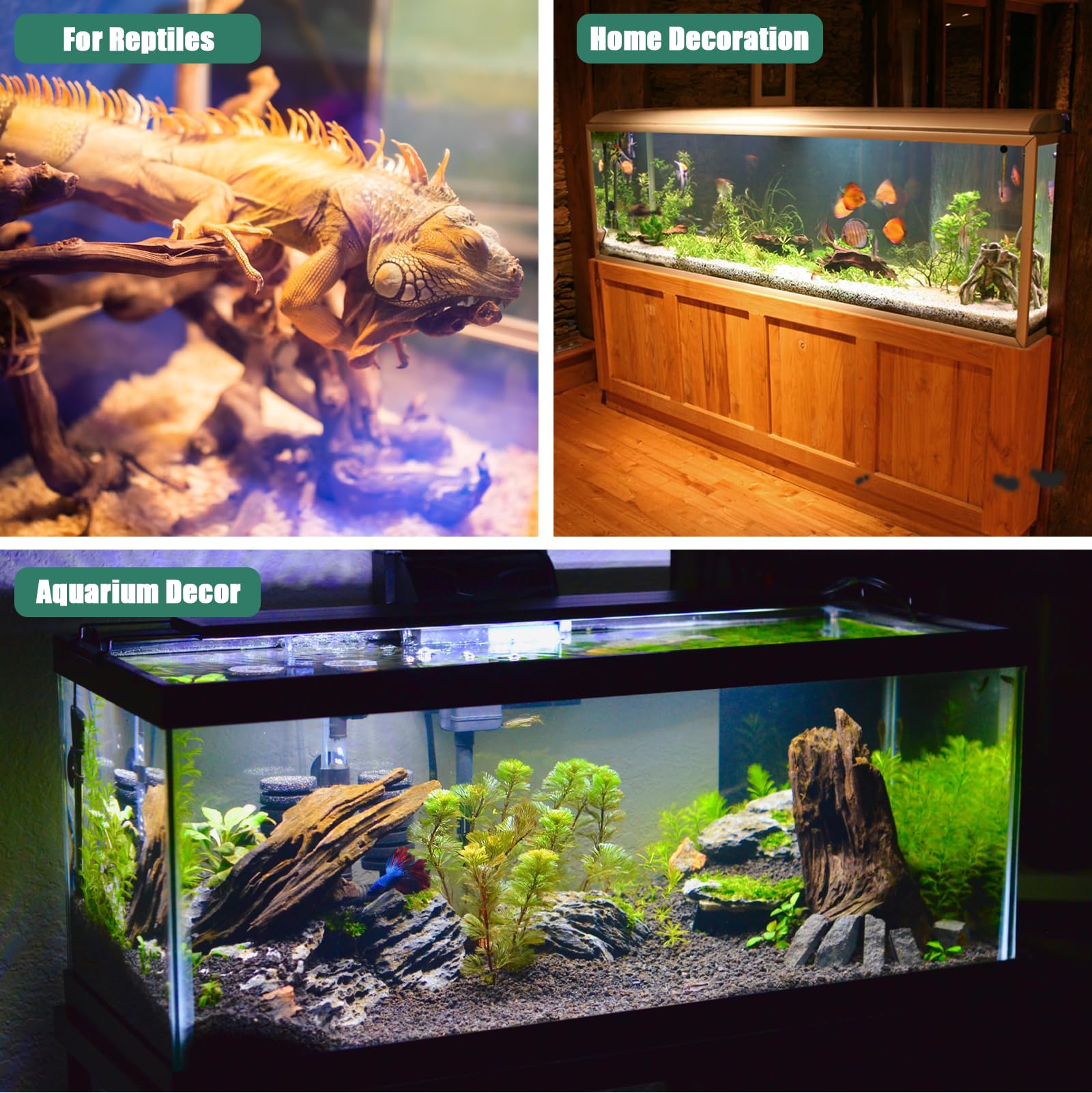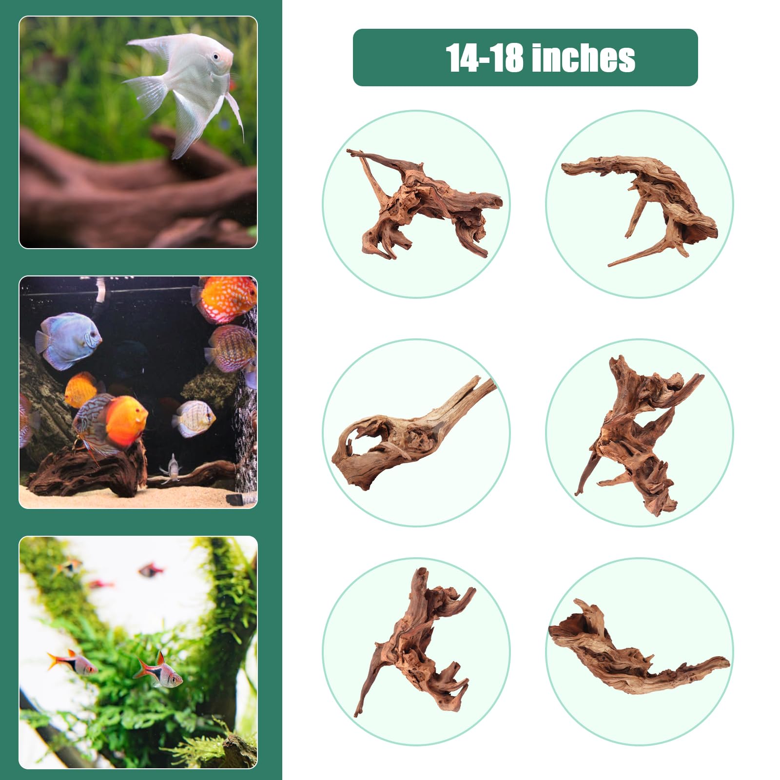 WIDELY USED -- Natural drift wood is 14~18 inches or longer in length. You can place them in various aquariums fish tanks decoration, wooden boxes and glass terrariums according to your creative needs. Great for aquatic landscaping, sandpit climbing pets, such as fish, shrimp, turtles, bearded dragons, lizards, spiders, snakes, hermit crabs and more. Adds a natural, realistic view and provides them with a hiding place and more comfortable habitat.
