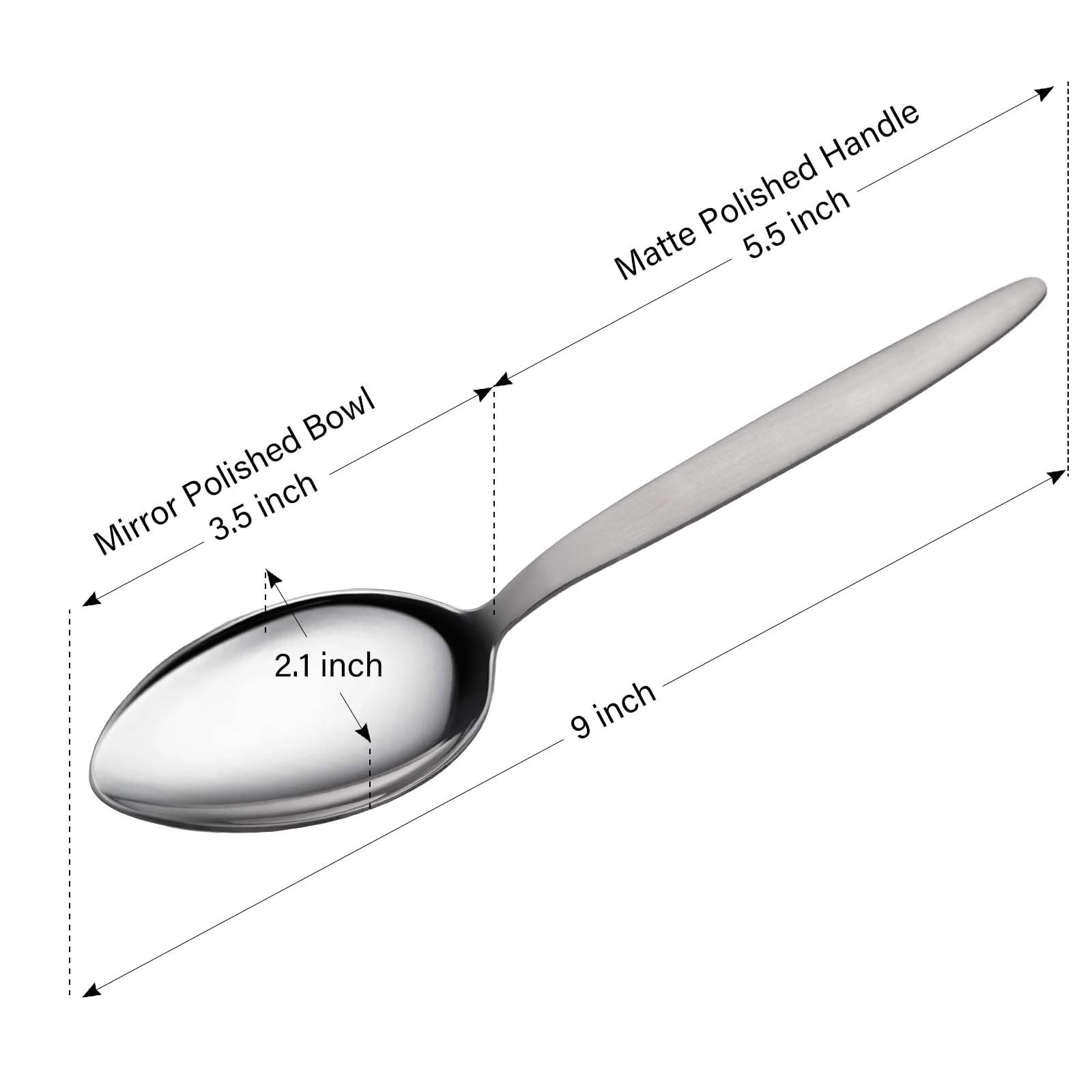 Premium Look and Feel: The 5.5-inch matte polished handle resists fingerprints and scratches for a clean look, while the mirror polished bowl makes it easy to inspect contents. Weighing 2.93 oz and with an overall length of 9 inches, this metal cooking spoon achieves a perfect balance between functionality and aesthetics in a premium kitchen tool.