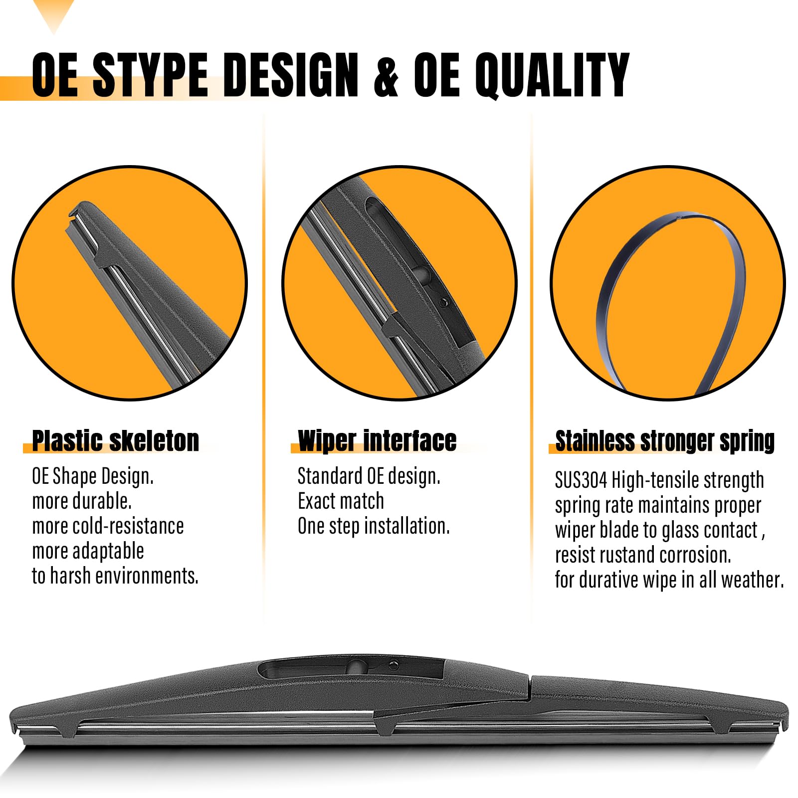 SUPER SERVICE: Every product includes a 180 days money back &1 Year warranty,true worry-free shopping experience, 100% Satisfaction Guarantee .Package Qty: 1pc rear t Wiper Blade