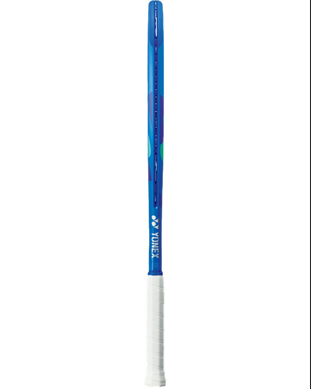 YONEX UNISEX EZONE 100 BLAST BLUE RACQUET: The Yonex EZONE 100 Blast Blue Tennis Racquet is engineered for all-around players seeking electrifying power, precision, and ultimate comfort on every shot. Featuring ISOMETRIC technology, this racquet enlarges the sweet spot by 7% compared to conventional round frames, improving accuracy and reducing mishits. Crafted with high-modulus graphite, 2G-Namd SPEED, VDM (Vibration Dampening Mesh), and MINOLON weave, the EZONE 100 efficiently transfers energy for effortless power while absorbing shock to protect the wrist, forearm, and elbow. Integrated Oval Pressed Shaft (O.P.S) adds dwell time and enhanced spin control, allowing precise, aggressive baseline strokes and versatile all-court play. Weighing 300 g strung with a 320 mm balance, this racquet provides an optimal combination of stability, maneuverability, and swing speed. Its aerodynamic beam design (24.5-26.5-23 mm) maximizes performance while minimizing fatigue. The 16x19 string pattern enhances spin, directional control, and confidence in every rally. Finished in bold Blast Blue, the racquet is as stylish as it is functional. MAIN FEATURES: - ISOMETRIC Design; - 2G-Namd Speed; - VDM mesh; - Aerodynamic Beam; - 16x19 Stringing Pattern; - 300 g; - Crafted in Japan.