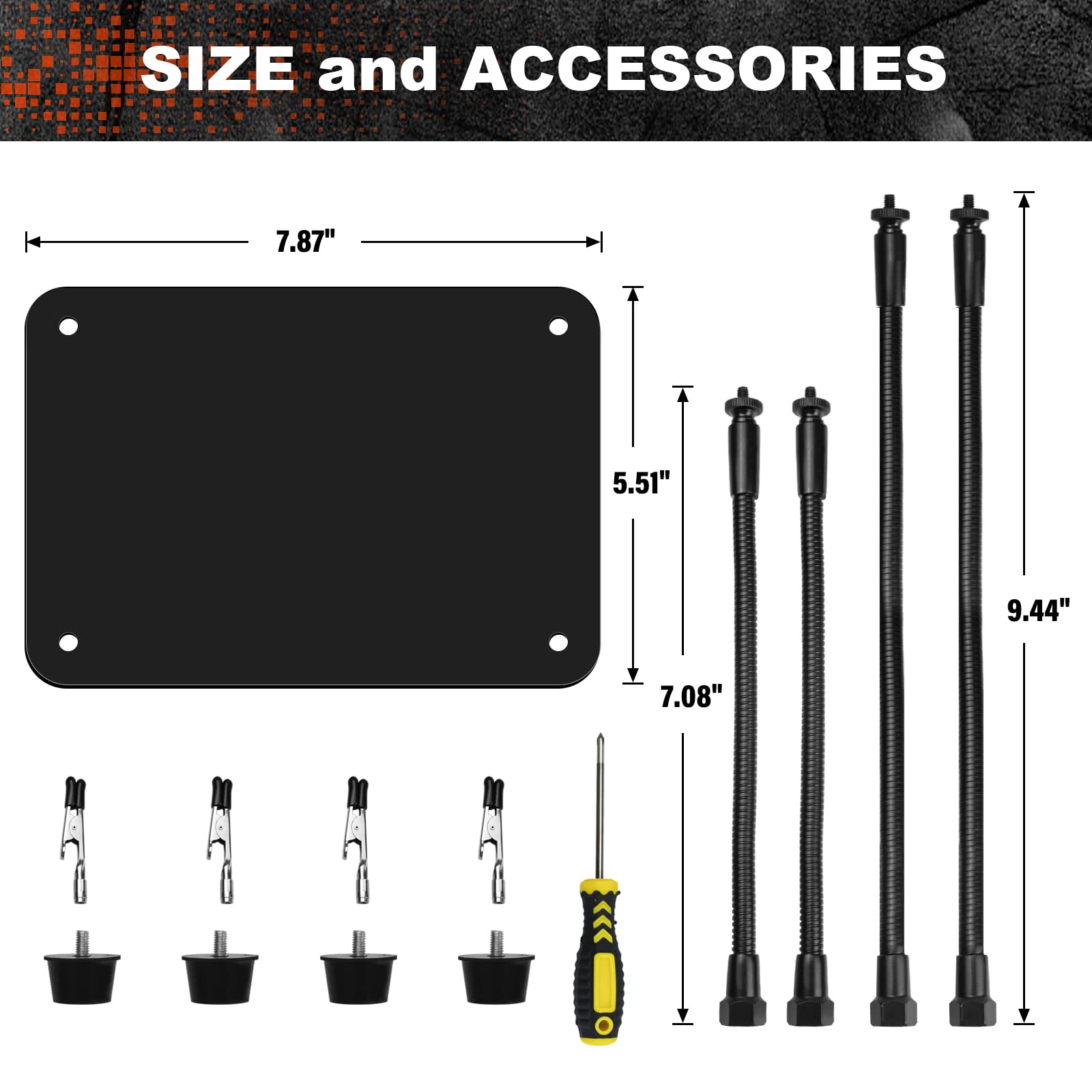 Sturdy Gooseneck and Insulated Alligator Clips: 2 Adjustable 9.44" and 2 Adjustable 7.08" Metal Gooseneck Arms (Solder Hands), which lock tightly to the base with screws. Alligator clips can be rotated 360 degrees, then positioned and locked in place. The clip comes with a rubber sleeve, so you can avoid scratching the polished surface of your jewelry or shorting out the circuit board.